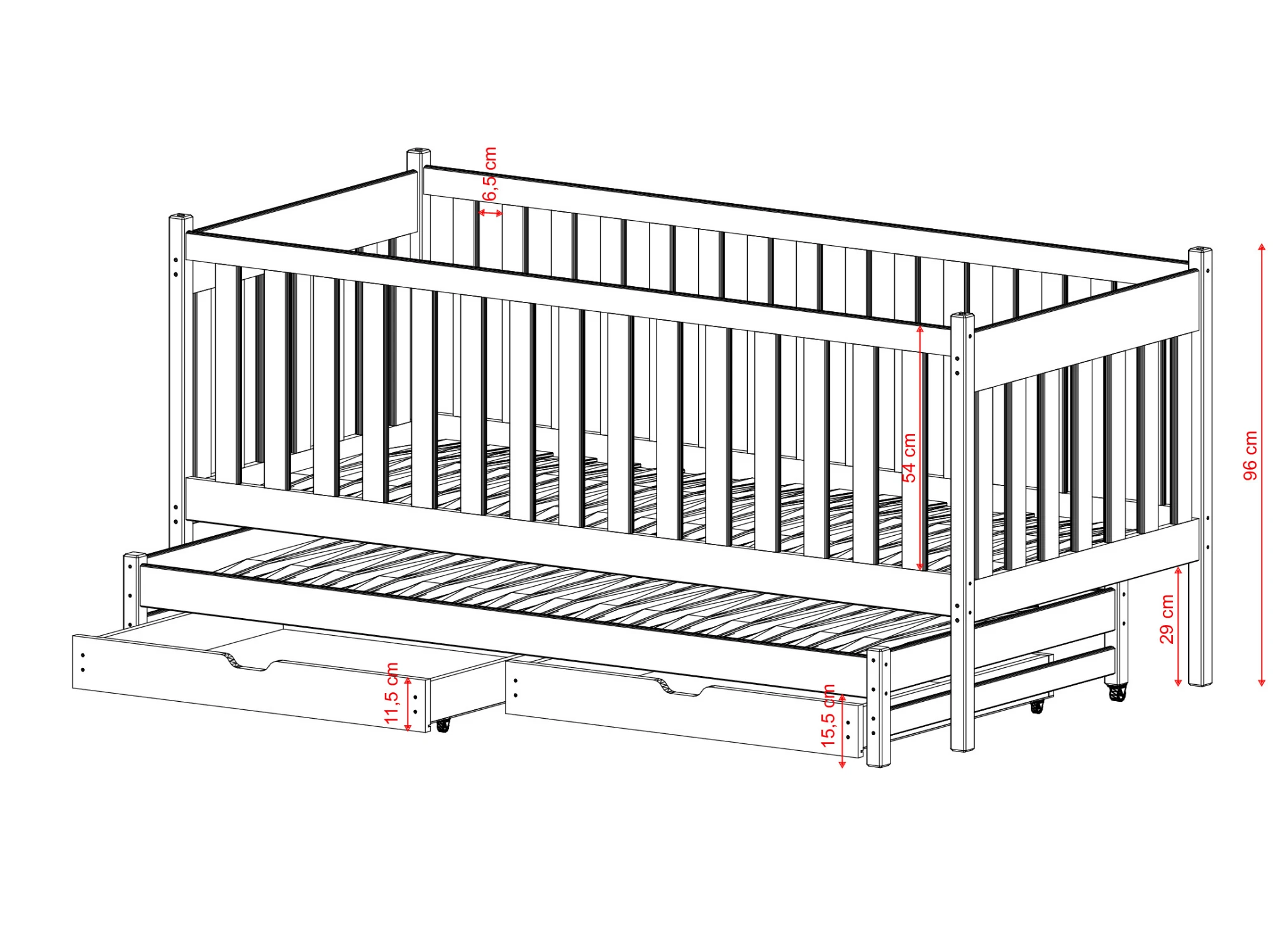 Lit superposé coulissant en lit non KAJA 80x180 - un meuble sûr pour les frères et sœurs