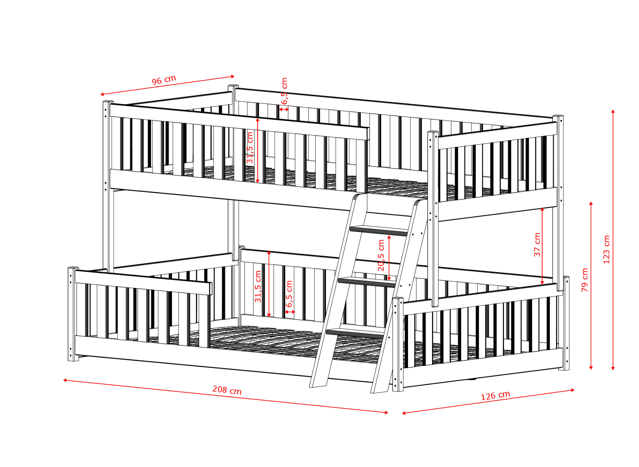 | Largeur du matelas | 90 – matelas supérieur, 120 – matelas inférieur |