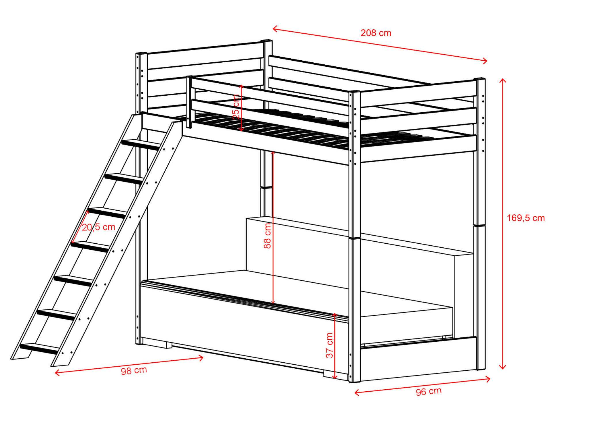 | Largeur du lit | 96/191 (dimensions totales une fois déplié avec l'échelle) |