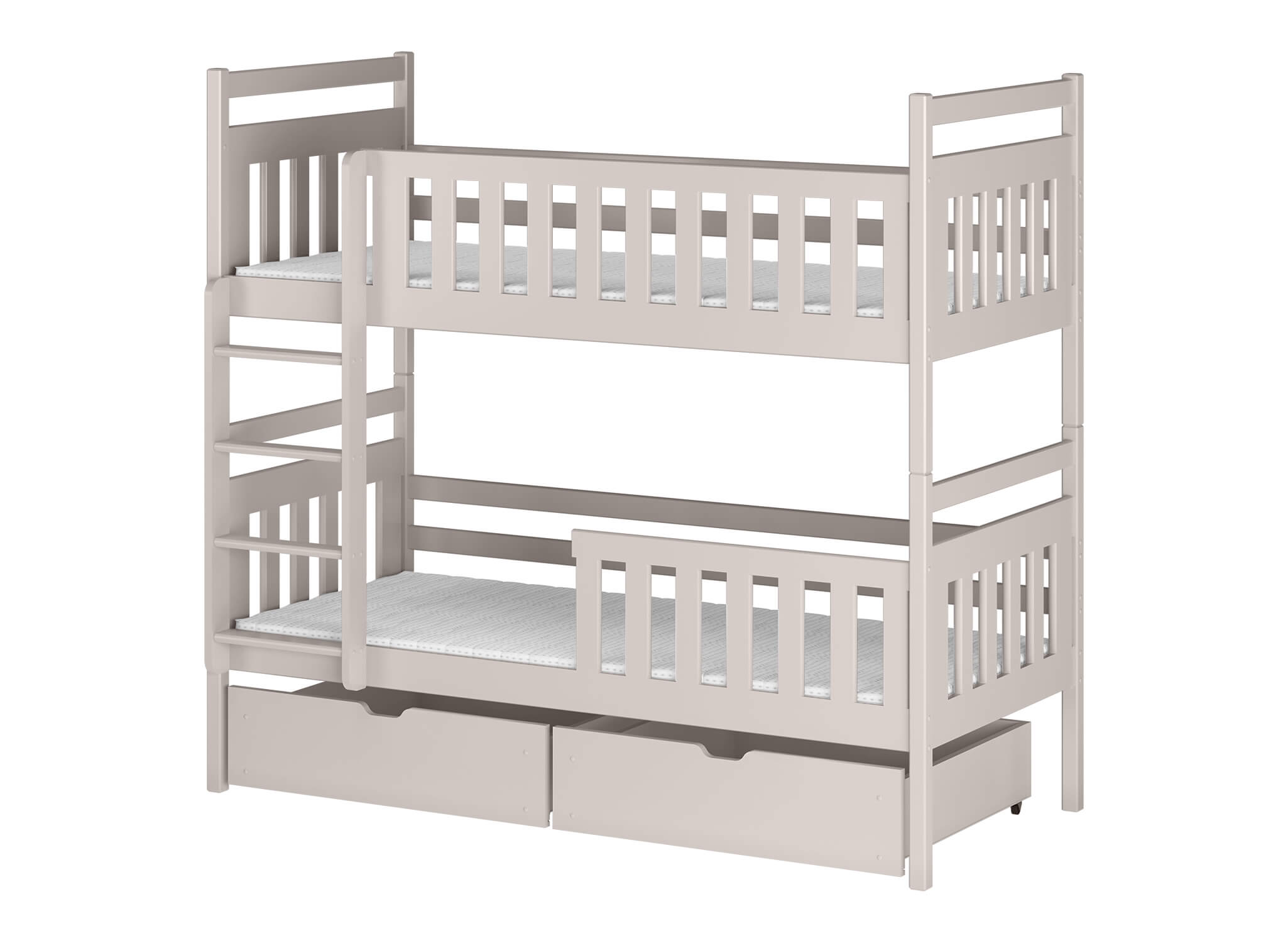 Le lit superposé MONIKA est une solution idéale non seulement pour les petits espaces, mais aussi pour toute chambre d'enfant partagée par des frères et sœurs. Pourquoi ? Un tel lit stimule l'imagination et favorise la créativité. Regardez également le côté pratique du lit pour frères et sœurs MONIKA. Les deux parties peuvent être séparées, créant ainsi deux zones de couchage indépendantes. En commandant notre lit superposé MONIKA, nous vous offrons une grande liberté. Vous pouvez personnaliser le meuble, afin de l'adapter aux besoins de vos enfants. C'est vous qui décidez si l'espace sous le lit doit être équipé de deux tiroirs. Lors de la commande, vous décidez également si les barrières du lit superposé MONIKA doivent être fixes ou amovibles.