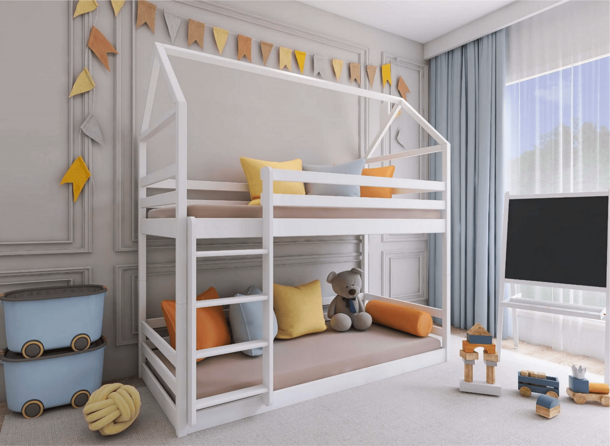 Vous préparez l'aménagement de la chambre d'enfant qui sera partagée par des frères et sœurs ? Le lit superposé AXEL est un choix parfait. Chez Lano Meubles, nous aimons réaliser les rêves des enfants, et chaque enfant partageant sa chambre avec un frère ou une sœur rêve secrètement d'un lit unique qui deviendra son refuge et sa base. AXEL, un lit superposé de type cabane, s'adapte à tous les intérieurs et permet de gagner de l'espace.