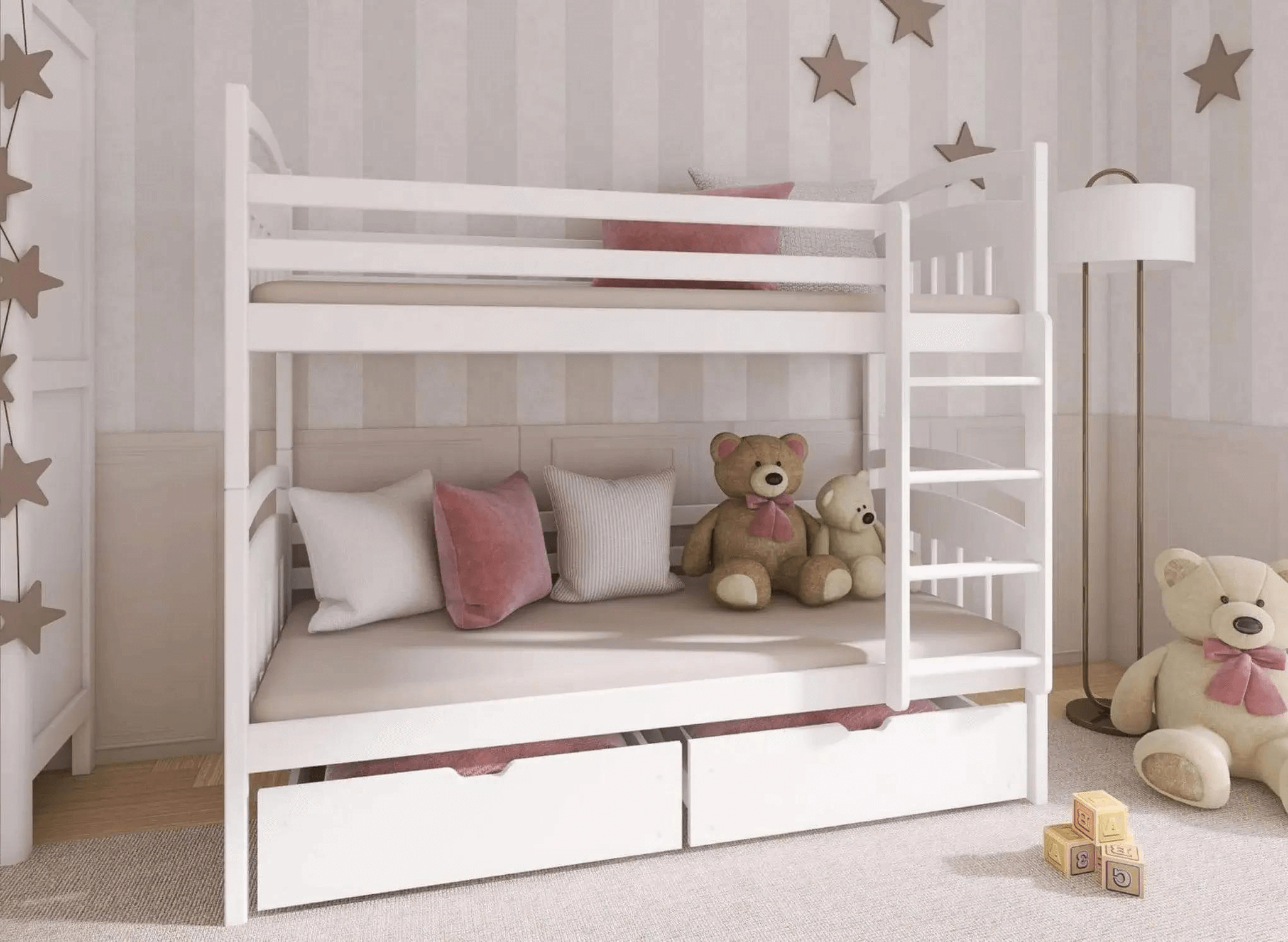 Le lit pour enfants GABI est le choix idéal lorsque vous avez deux enfants. Nous avons veillé à un design unique et magique. La chambre d'enfant prendra une toute nouvelle ambiance. Le lit superposé GABI est solide et robuste. Nous avons utilisé des barrières de sécurité pour enfants spéciales et une échelle universelle. Pour notre lit pour enfants GABI, vous pouvez choisir vous-même les matelas de couchage - tout comme plusieurs autres paramètres et éléments du lit. Le lit superposé GABI est une proposition qui répondra même aux exigences les plus élevées. Cette proposition se distingue à bien des égards. Nous avons fabriqué le lit superposé GABI en bois de pin de haute qualité - cela garantit sa durabilité. Les barrières en bois et l'échelle universelle font partie des autres avantages importants. GABI est un lit avec des tiroirs, où vous pouvez ranger par exemple des jouets, des oreillers, une couette ou du linge de lit. Il convient également de noter que nous offrons dans ce cas une personnalisation. Le lit superposé GABI peut être adapté selon vos préférences.