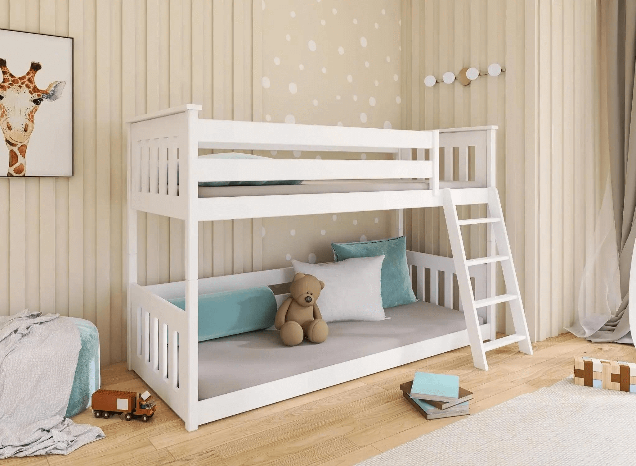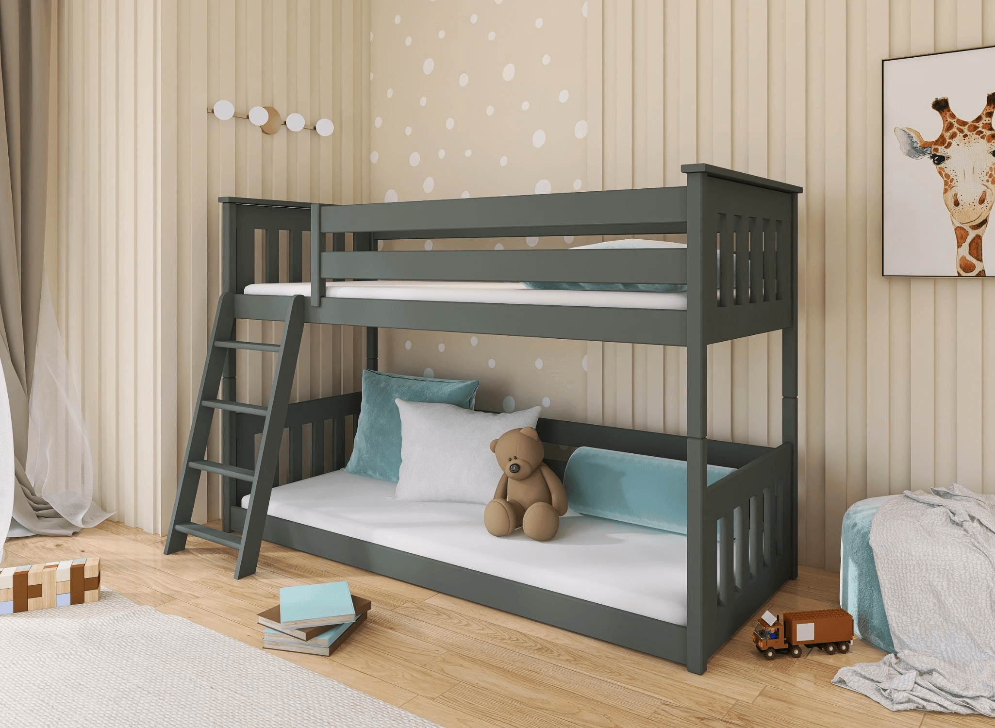 Vous vous dites : "Je vais acheter le meilleur lit pour mon enfant, même au détriment de l'apparence." Maintenant, vous n'avez plus besoin de renoncer à un meuble bien adapté à la chambre d'enfant. Notre lit superposé KEVIN est une combinaison de confort, commodité et sécurité. Nous l'avons enfermé dans une structure classique. Vous voulez que votre petit dorme bien. C'est tout à fait compréhensible, et nous, en tant que Lano Meubles, sommes ravis de vous y aider. Comment un lit pour enfant peut-il influencer son sommeil ? Si votre enfant se sent bien dans sa chambre d'enfant, dans le lit superposé KEVIN où il dort, il sera plus enclin à y revenir chaque soir. Et vous ? Vous aurez un moment pour vous.
