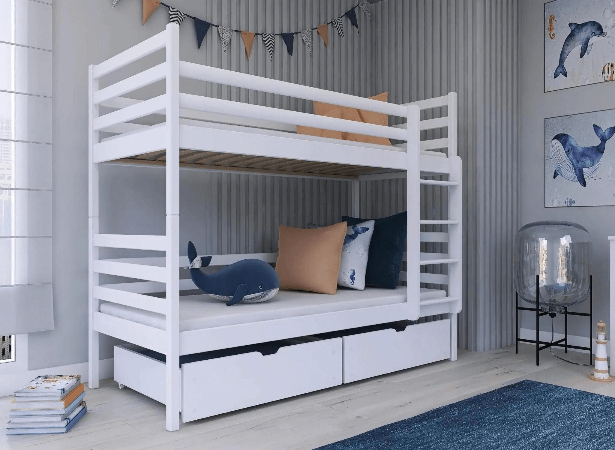 Ne nous le cachons pas, le rêve de presque chaque enfant est d'avoir un lit superposé. Grimper à l'étage supérieur grâce à une échelle en bois bien profilée est une expérience formidable et une attraction géniale. Il est important de choisir des solutions éprouvées et solides comme celles proposées par Lano Meubles, notamment le lit superposé NEMO. Ce lit pour enfant NEMO est bien plus qu'un lieu de repos. C'est aussi une organisation pratique de l'espace et un lieu de nombreuses activités. De plus, le lit superposé NEMO impressionne par son design unique. Il ne passera certainement pas inaperçu.Ce meuble offre deux espaces de couchage confortables, permettant à vos enfants de se réveiller reposés et pleins d'énergie. Il est également doté de deux tiroirs spacieux en bas du lit, suffisamment grands pour ranger des jouets, des accessoires pour enfants ou divers textiles.