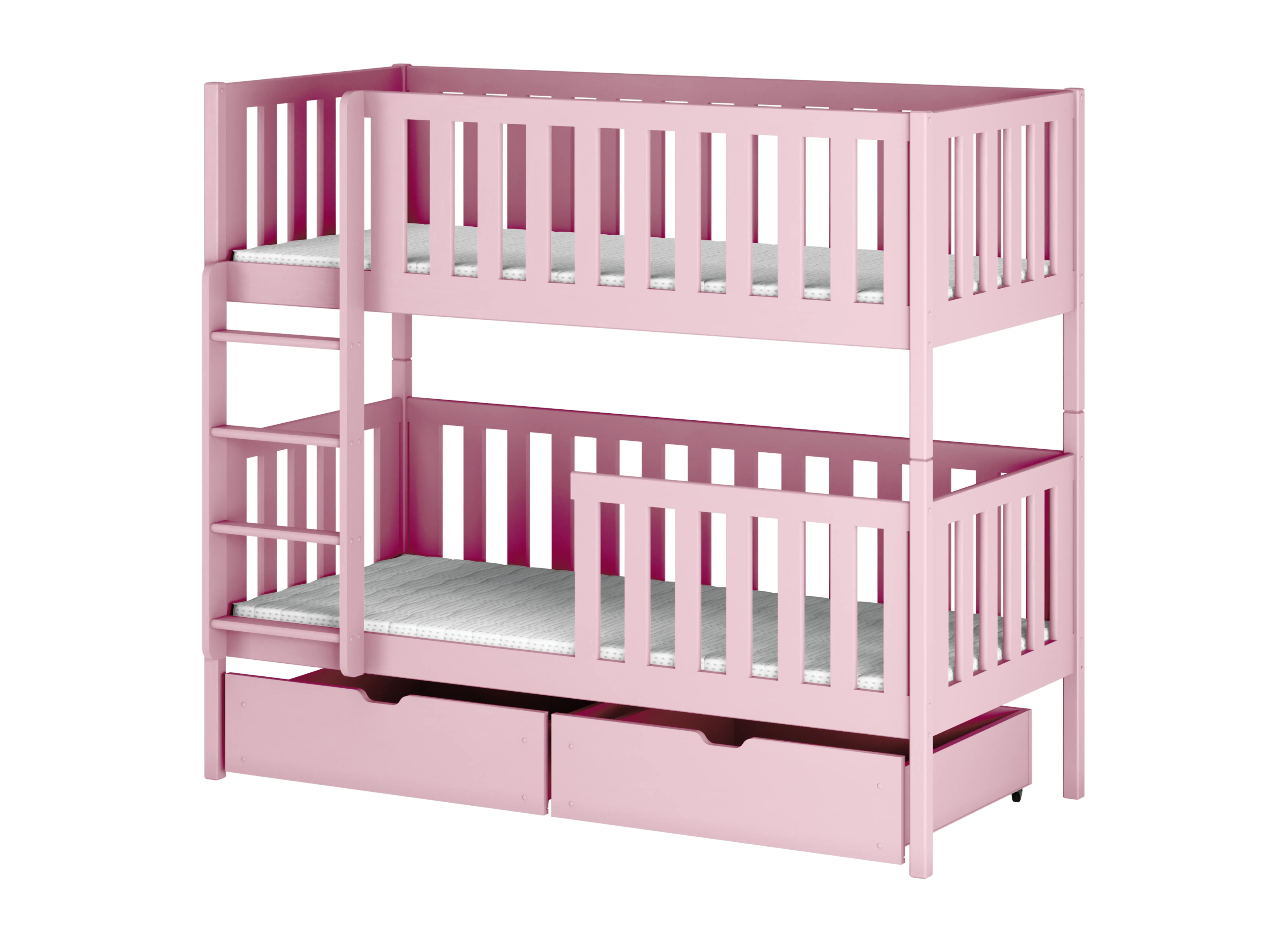 Tiroirs spacieux et élégants – parmi les nombreux atouts du lit superposé rose MICHALINA.
