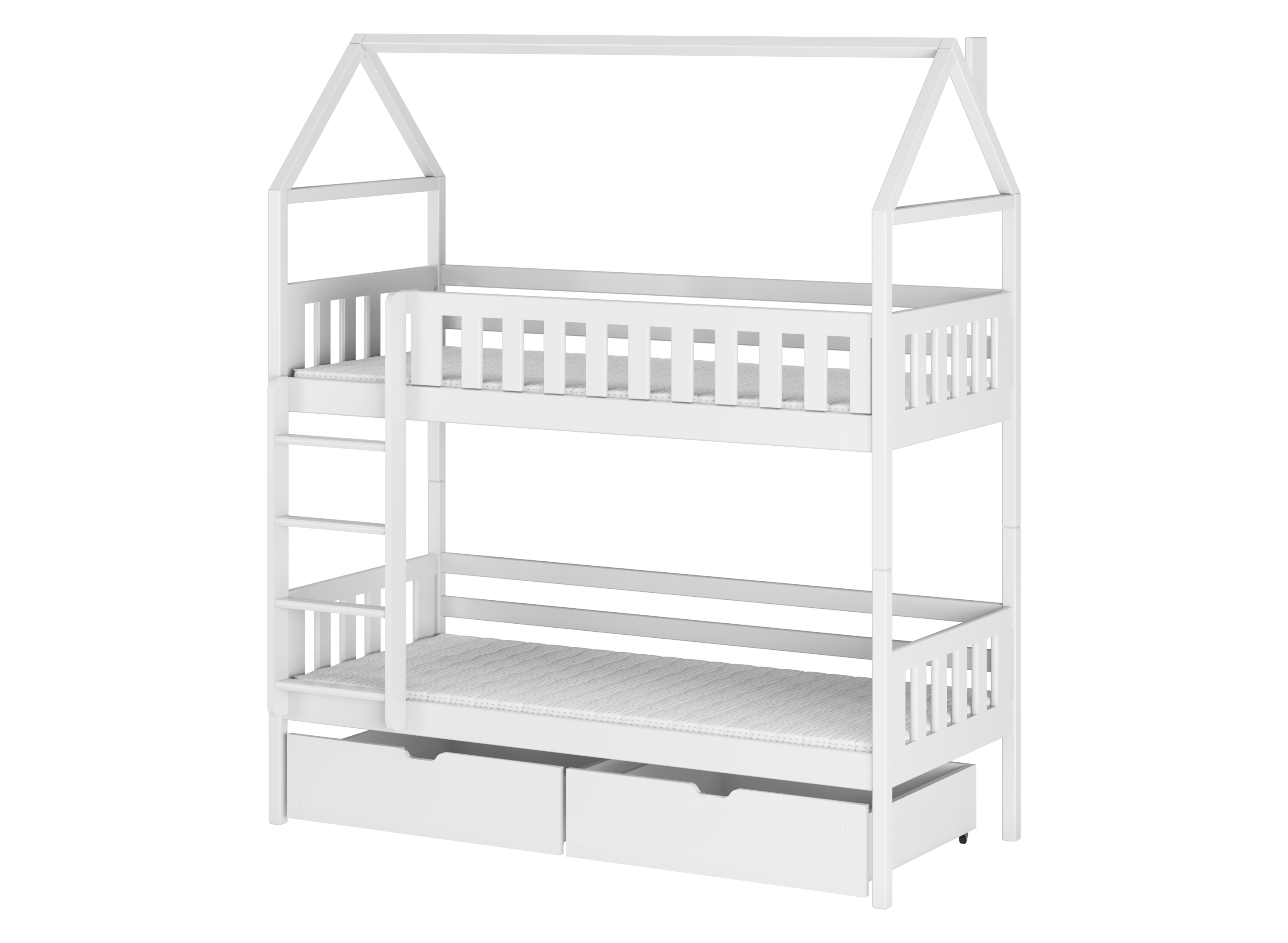 Un endroit pour dormir paisiblement et jouer en sécurité – lit superposé maison blanc GAJA 80x200.