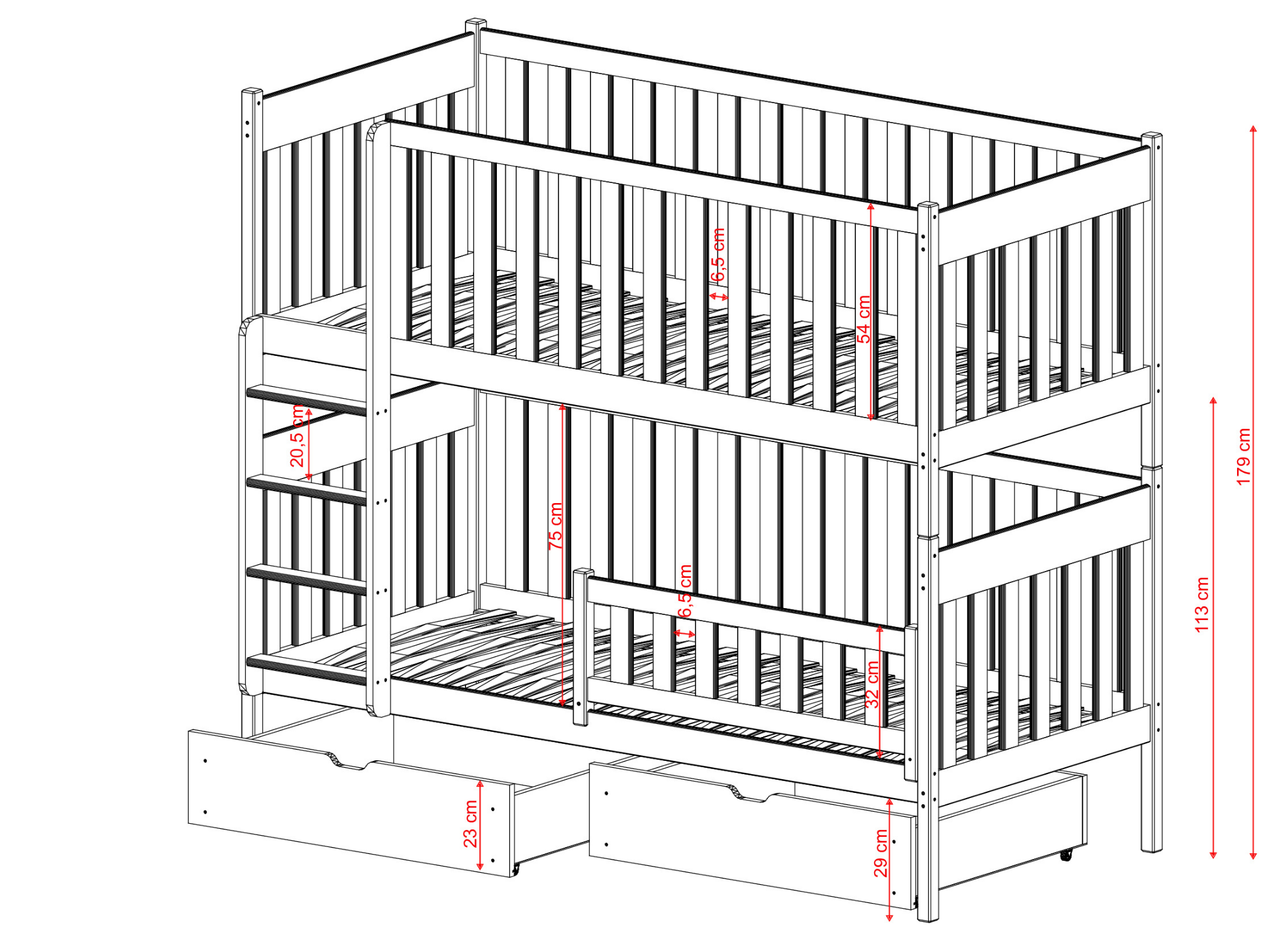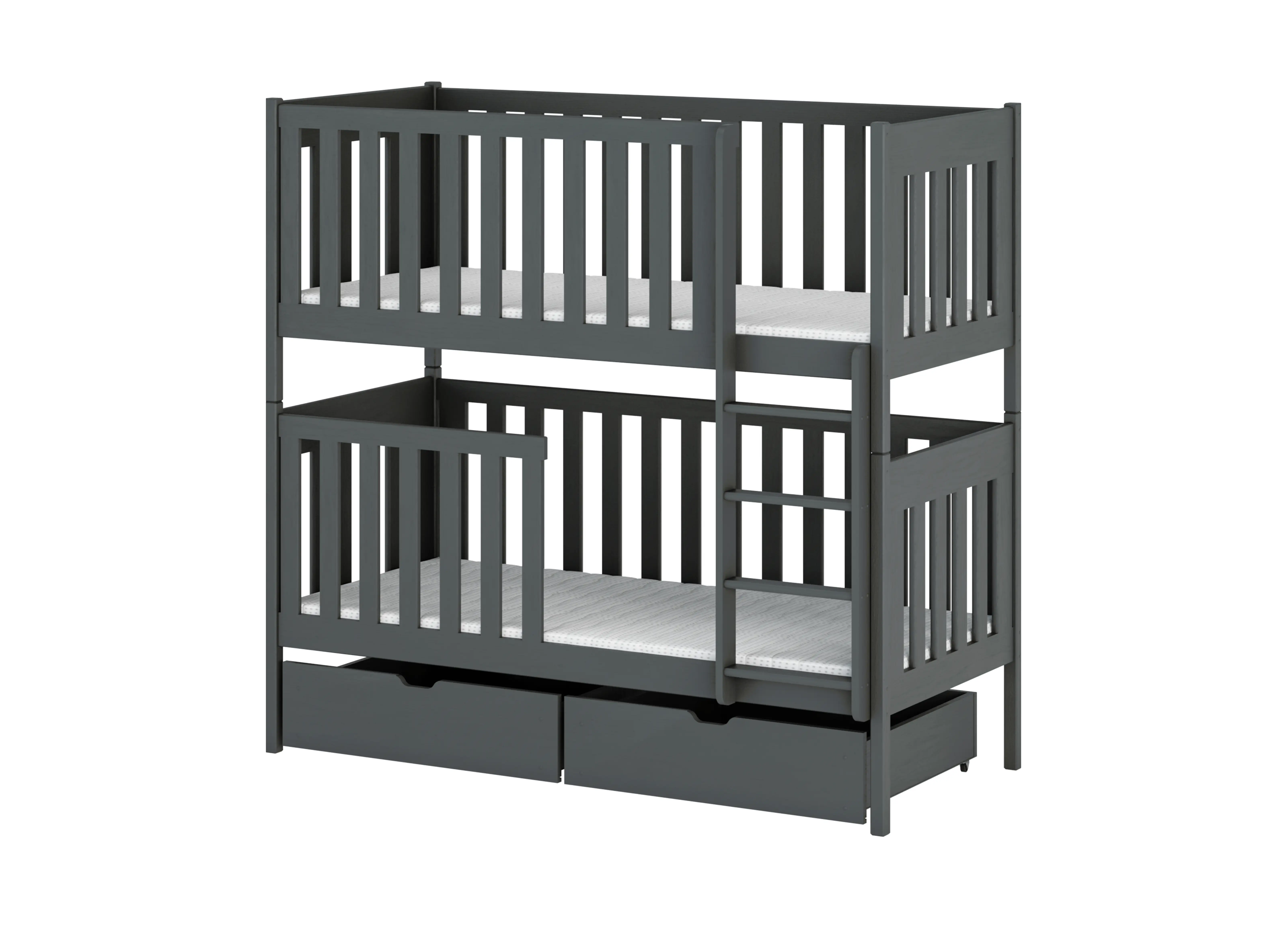 Trouver suffisamment d'espace pour les jouets et la literie est un défi dans chaque maison. Soyez malin et choisissez un lit pour enfants qui accueille les frères et sœurs tout en offrant de grands tiroirs pour les trésors. Notre lit superposé DAWID peut être configuré selon vos besoins, notamment en choisissant si des tiroirs seront placés sous le matelas inférieur. Sélectionnez les autres paramètres (barrière intégrée ou amovible et sa taille) et commandez dès aujourd'hui le lit pour enfants DAWID que vos enfants adoreront!