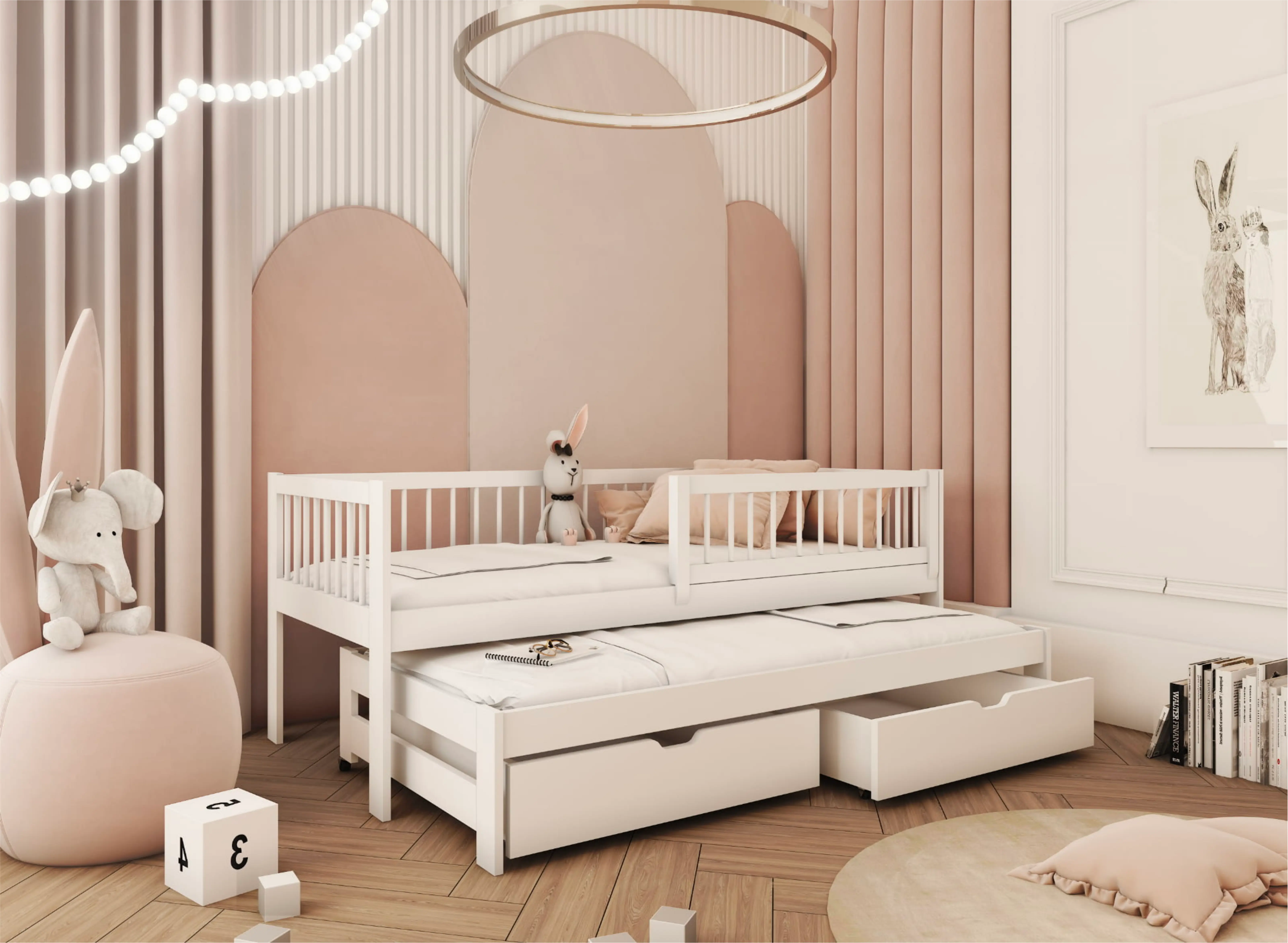 Lit escamotable, tiroirs spacieux – des extras dans le lit d'enfant blanc SOFTI