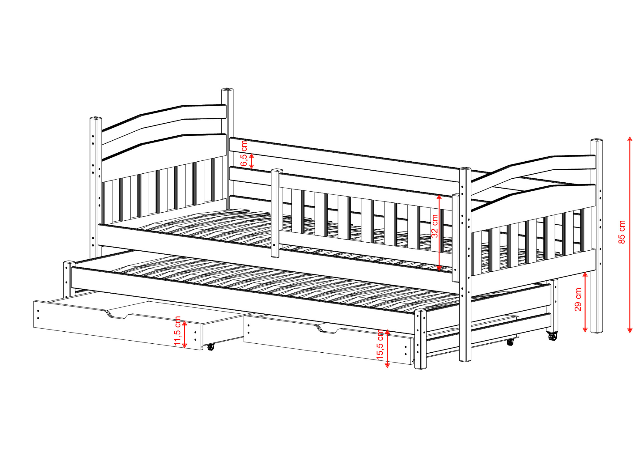 Ce modèle se distingue vraiment par sa fonctionnalité, son design et son confort. Le lit superposé GALAXY peut être adapté à vos préférences. Nous offrons le choix des tiroirs ainsi que du matelas supérieur et inférieur. Le lit enfant GALAXY dispose de toutes les fonctionnalités supplémentaires que l'on peut attendre. Nous avons utilisé des tiroirs spacieux, des barrières solides et un cadre solide et flexible. Tout cela avec le souci du détail.