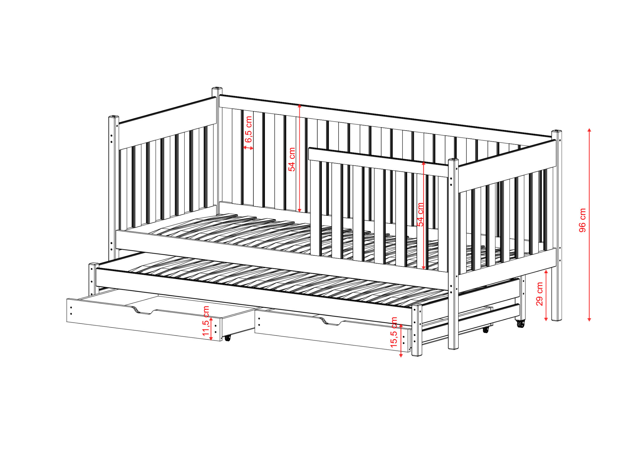 Pour rendre le lit superposé bas KAJA encore plus fonctionnel, optez pour des tiroirs coulissants. Ils offrent un espace de rangement supplémentaire pour les vêtements, les jouets et la literie. Les tiroirs sont spacieux et fonctionnent indépendamment, permettant à chaque enfant d'avoir le sien. Le lit superposé bas KAJA est fabriqué en bois de pin naturel, un matériau extrêmement solide et résistant. La construction du lit extensible KAJA est durable et supporte bien les petites et grandes charges, garantissant une utilisation prolongée par vos enfants pendant de nombreuses années.