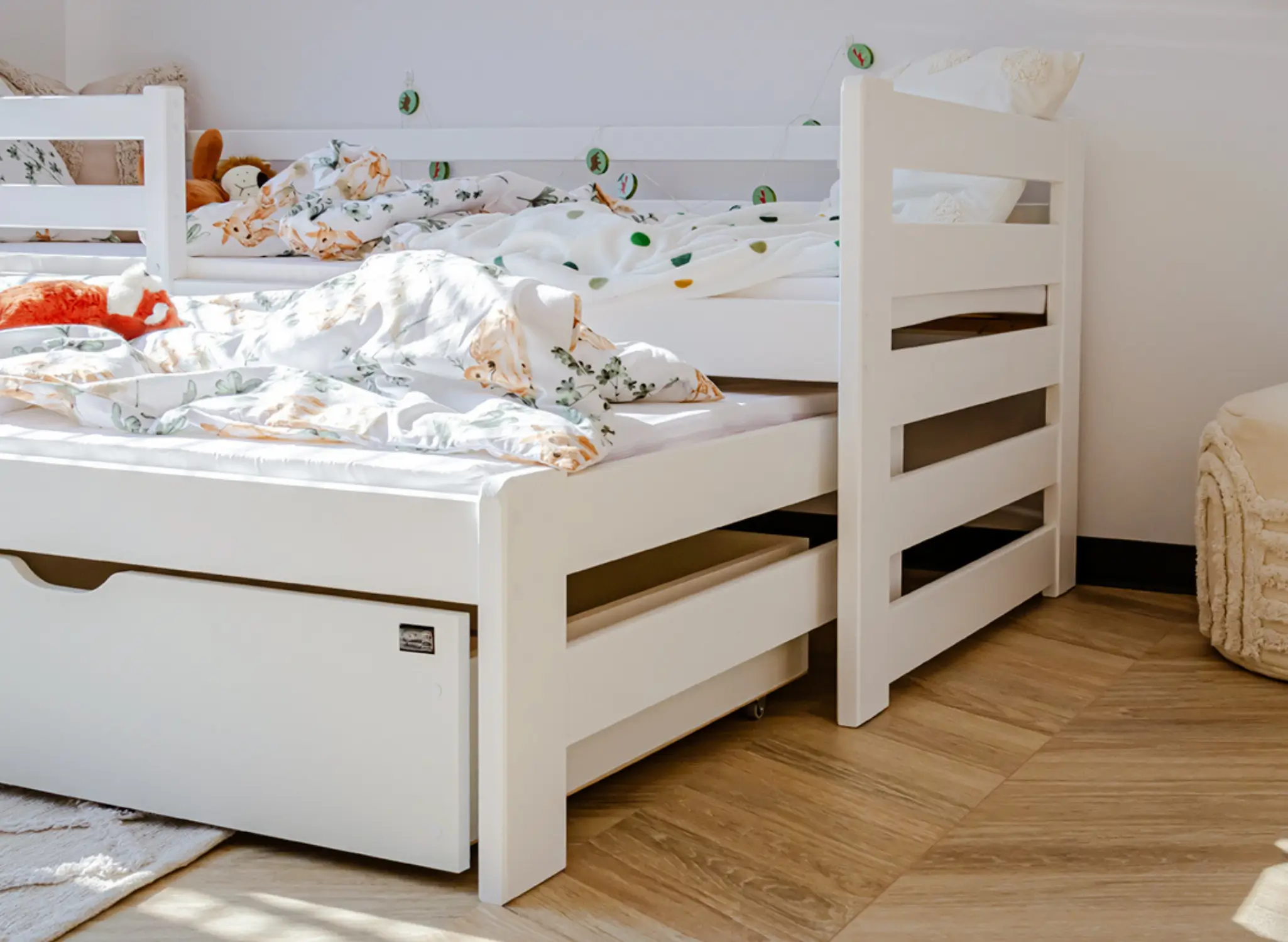 L'apparence finale du lit superposé SENSO pour frères et sœurs dépend de vous. Vous pouvez choisir le type de matelas en fonction des besoins et des préférences individuelles de chaque enfant. Chacun des deux matelas peut être différent. Lors de la commande, vous choisissez également l'option avec ou sans tiroirs.