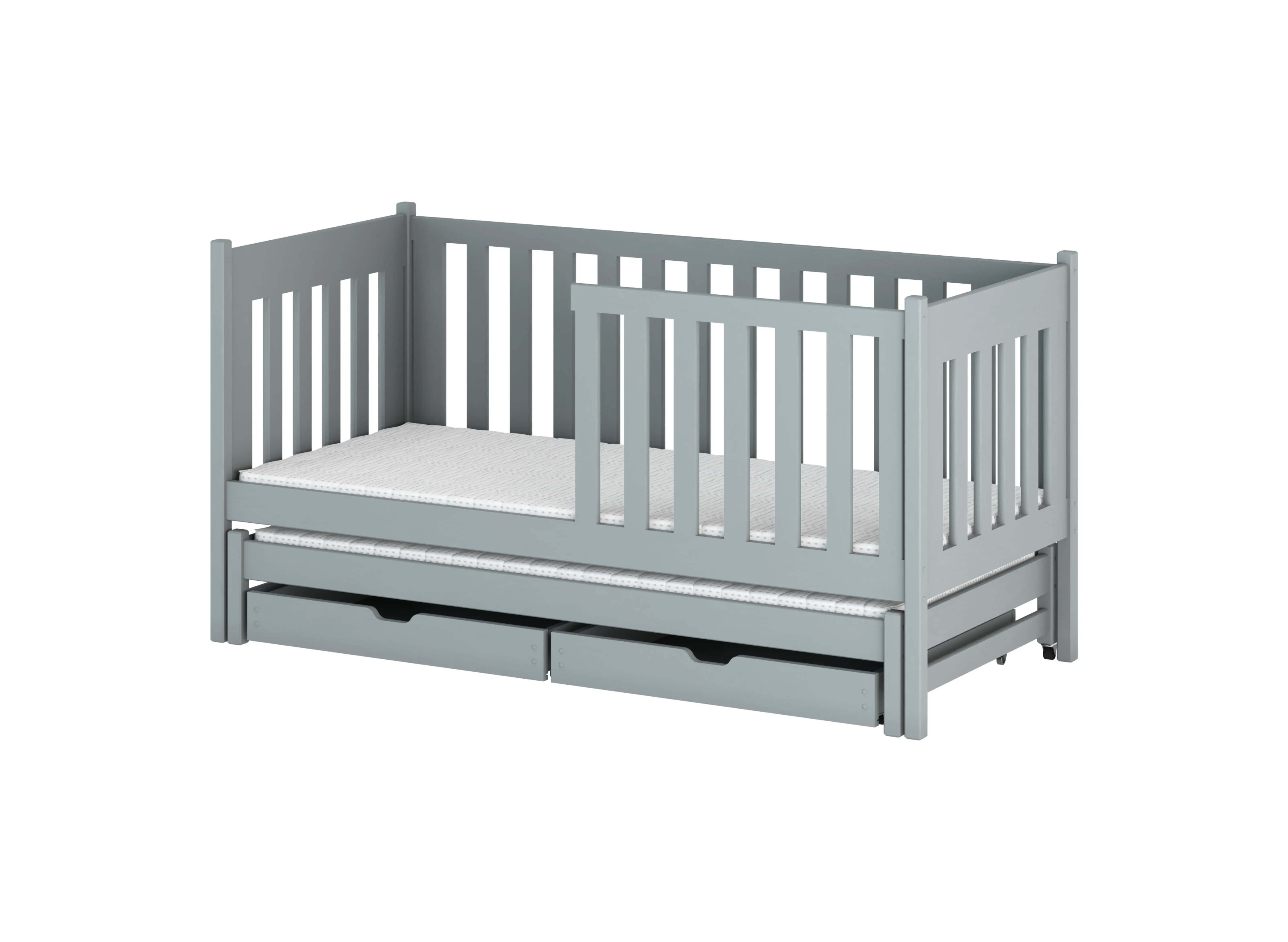 Gagnez plus d'espace avec des tiroirs spacieux pour le lit d'enfant KAJA en couleur cendre.