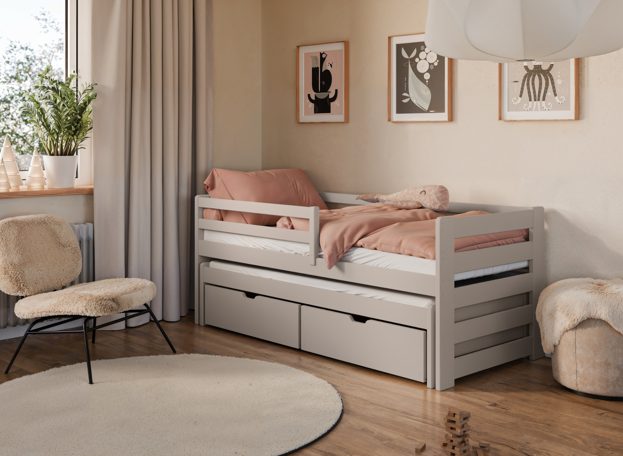 Fabriqué en bois de pin, le lit superposé SENSO est robuste et a une longue durée de vie. C'est donc un investissement à long terme, qui peut d'abord être un lit superposé pour enfants, puis un lit pour adolescents. Le cadre pour matelas est en lattes de bouleau FLEX, ce qui rend l'ensemble résistant aux charges. Le lit superposé extensible SENSO est une bonne alternative à deux lits séparés dans une chambre où l'espace manque. Il prend autant de place qu'un lit simple standard. En option, il peut être équipé de tiroirs spacieux pour le rangement, par exemple, de la literie, des jouets ou des vêtements.