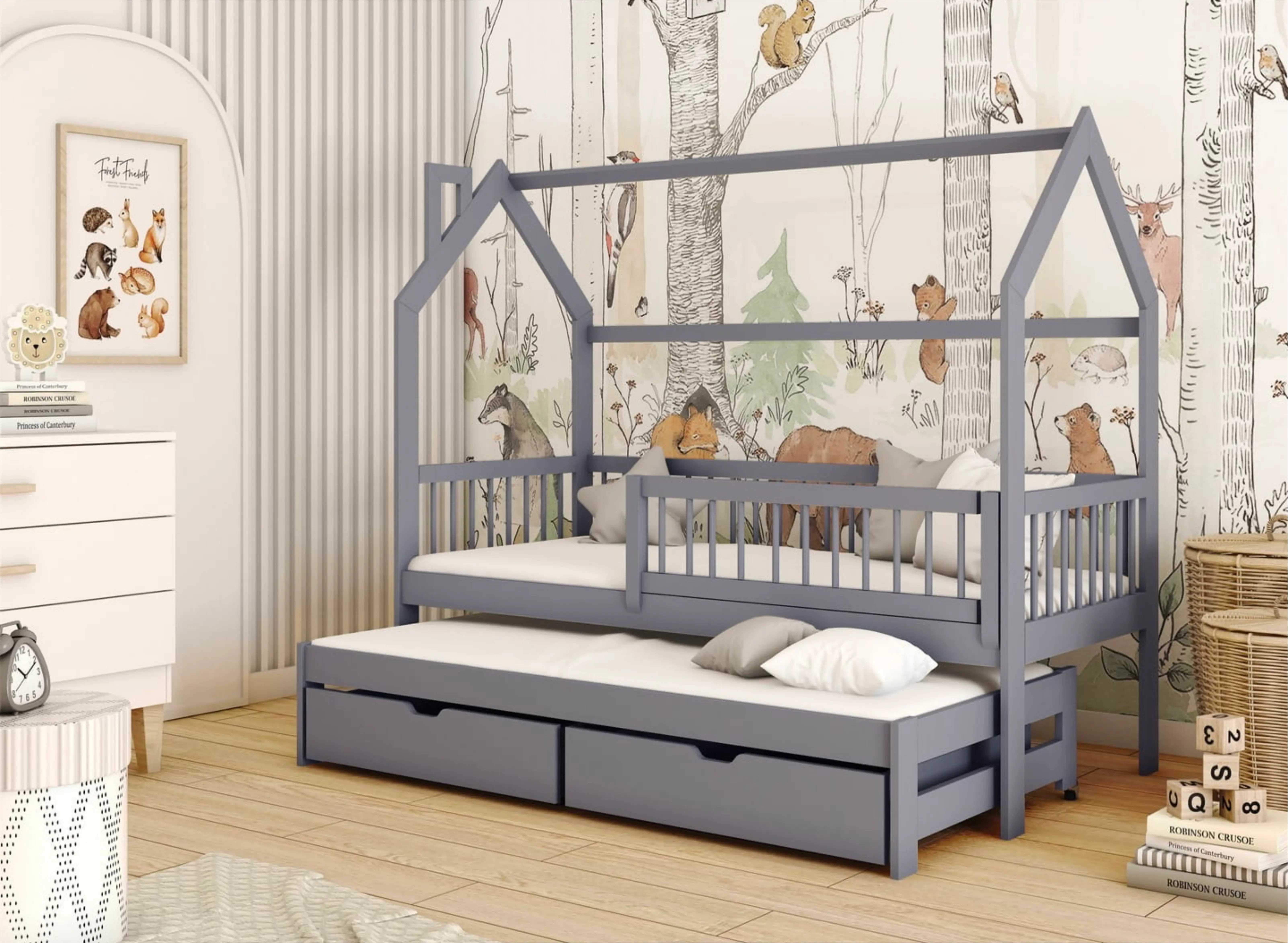PAPI 90x180 gris lit enfant maison Lano Meubles