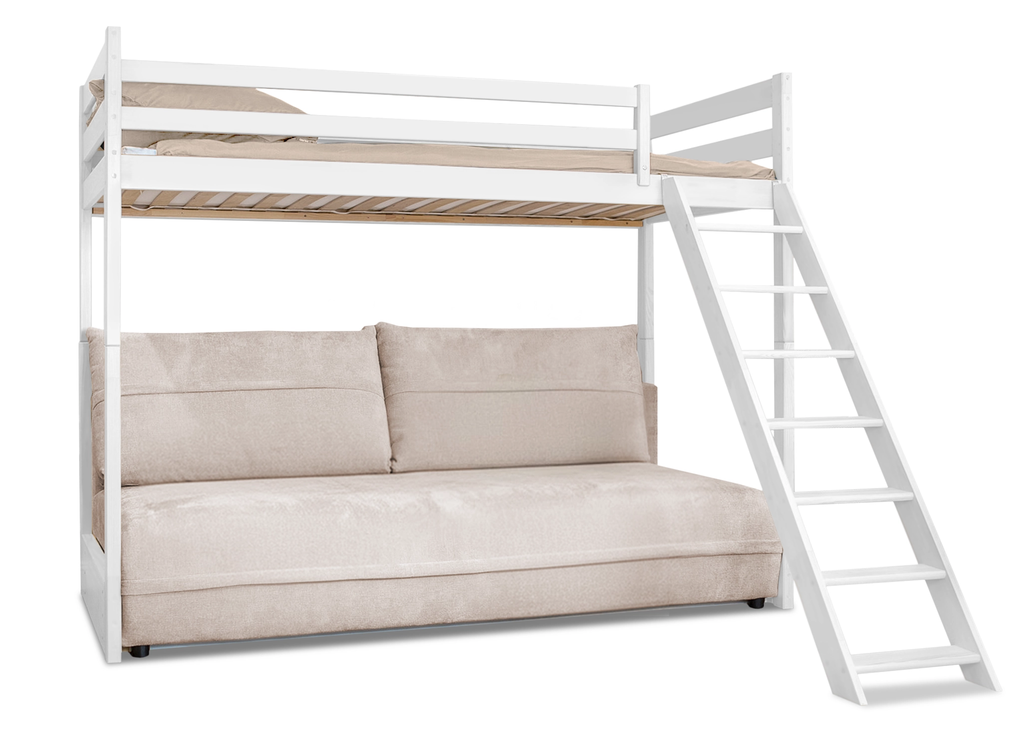 SAVIO 90x200/140x200 blanc lit mezzanine avec canapé-lit en tissu perfect harmony 02 Lano Meubles