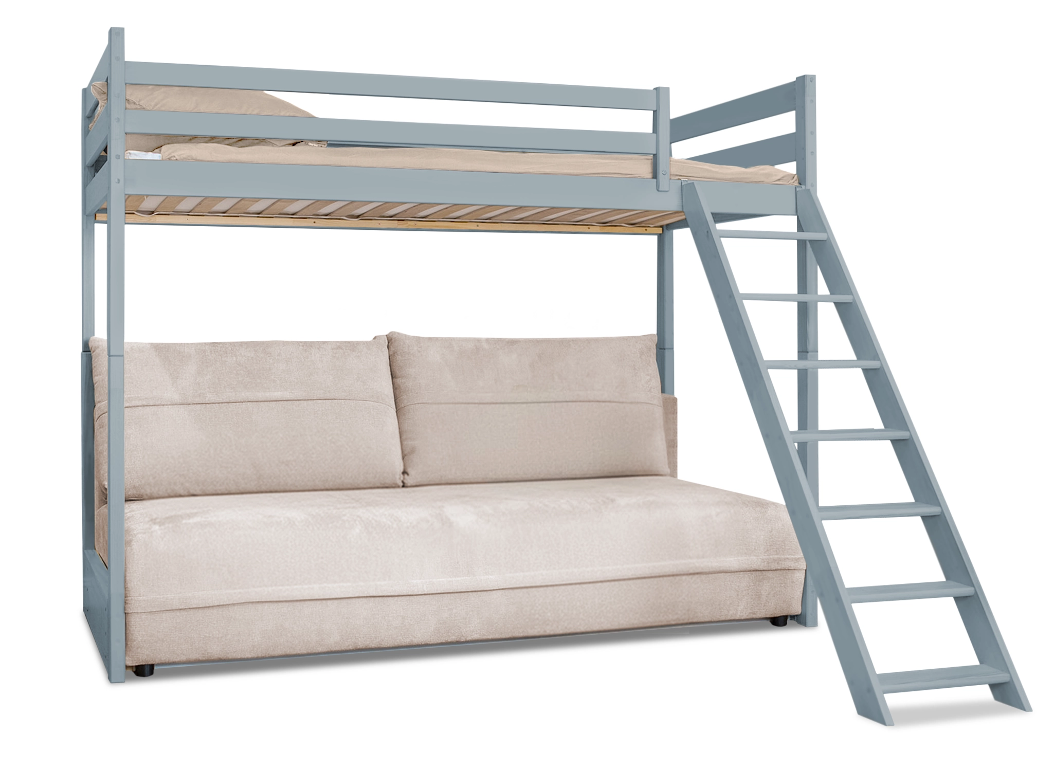 SAVIO 90x200/140x200 gris cendré lit mezzanine avec canapé-lit en tissu perfect harmony 02 Lano Meubles