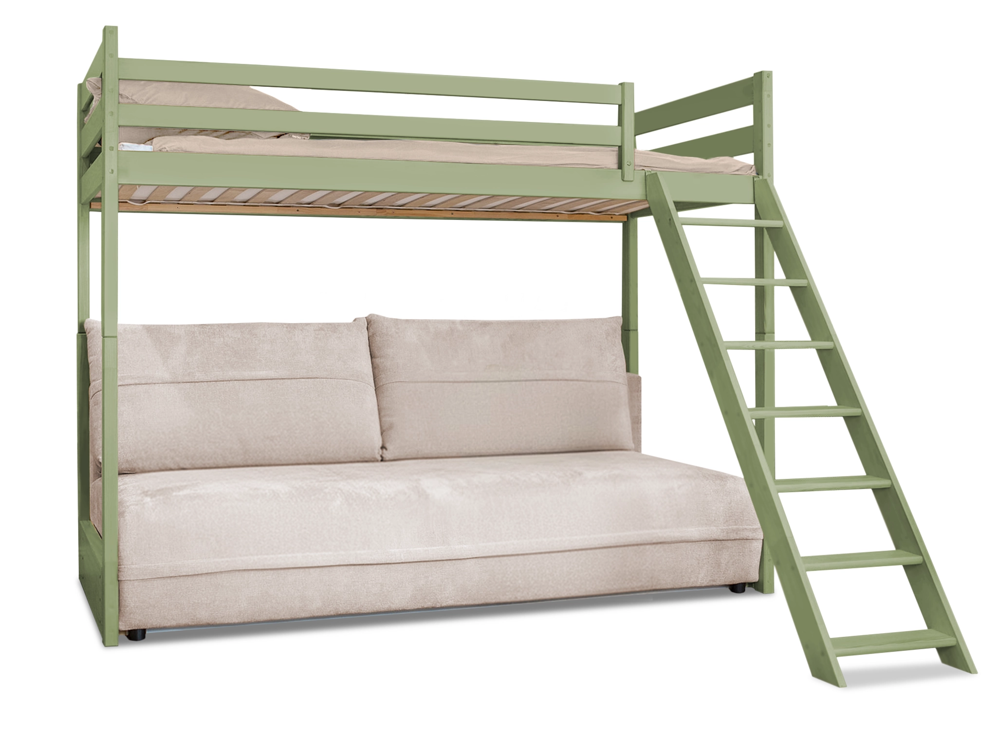 SAVIO 90x200/140x200 olive lit mezzanine avec canapé-lit en tissu perfect harmony 02 Lano Meubles