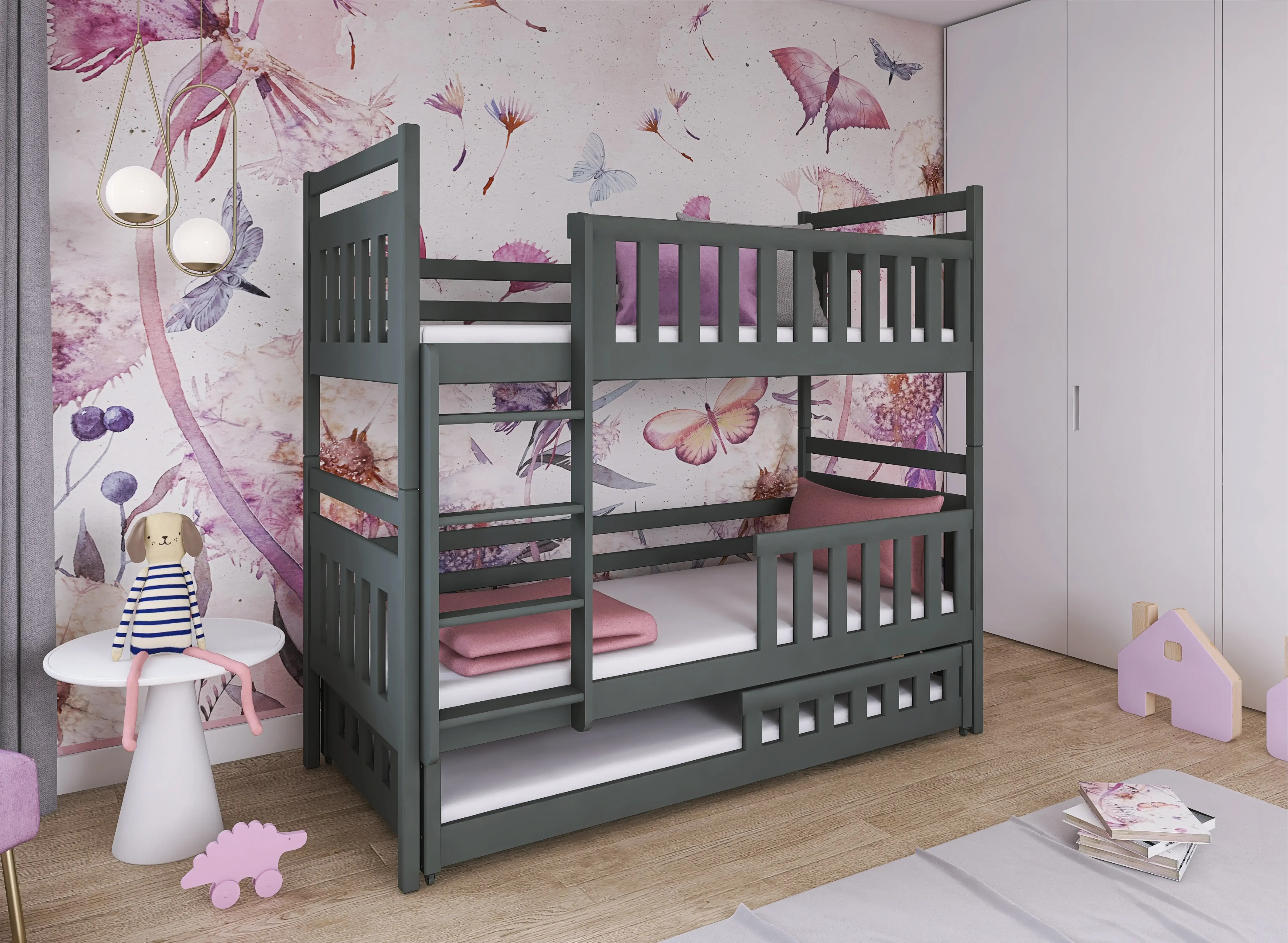 Le lit superposé graphite OLIWIA avec un couchage coulissant – une solution extrêmement fonctionnelle.