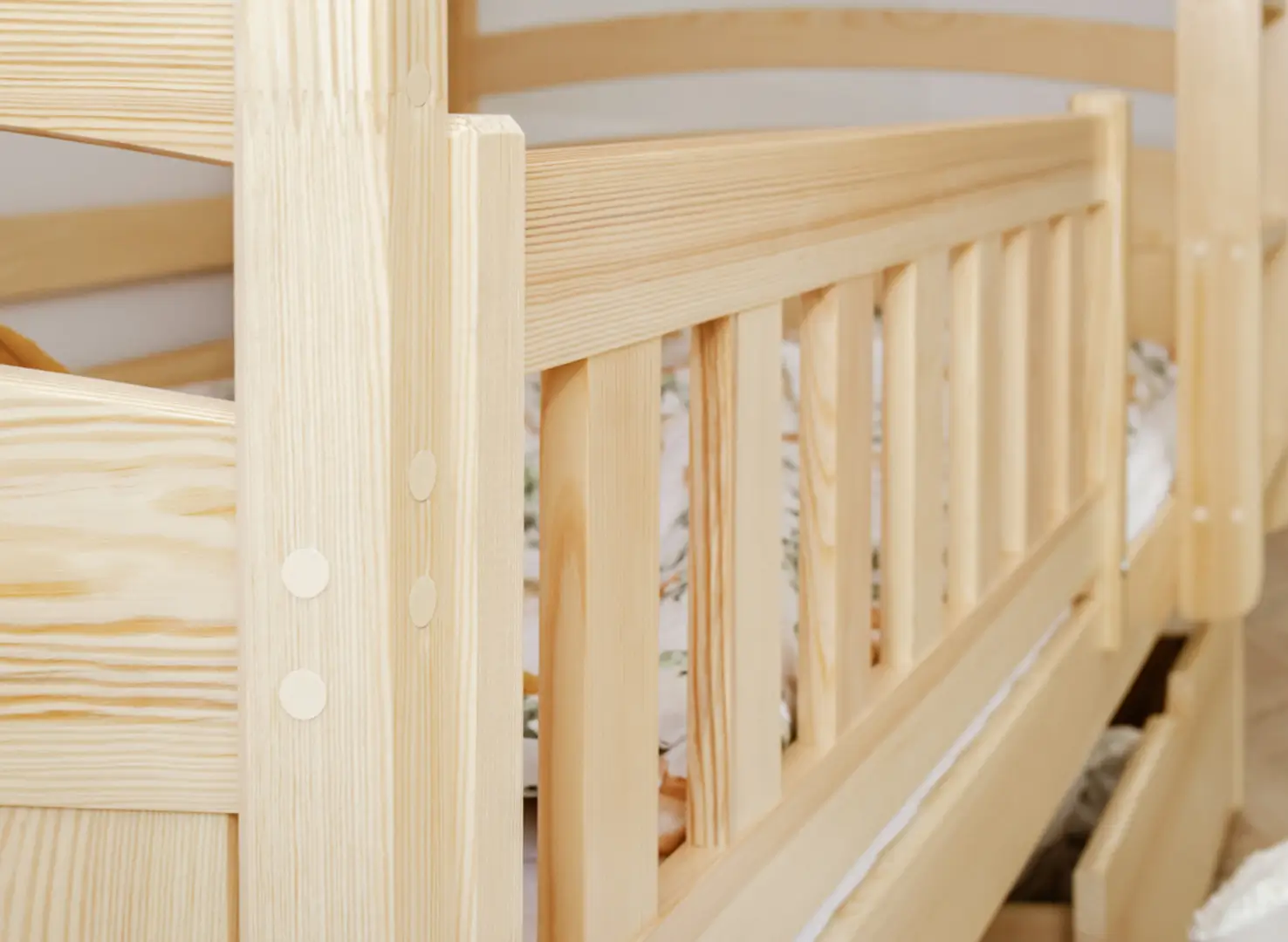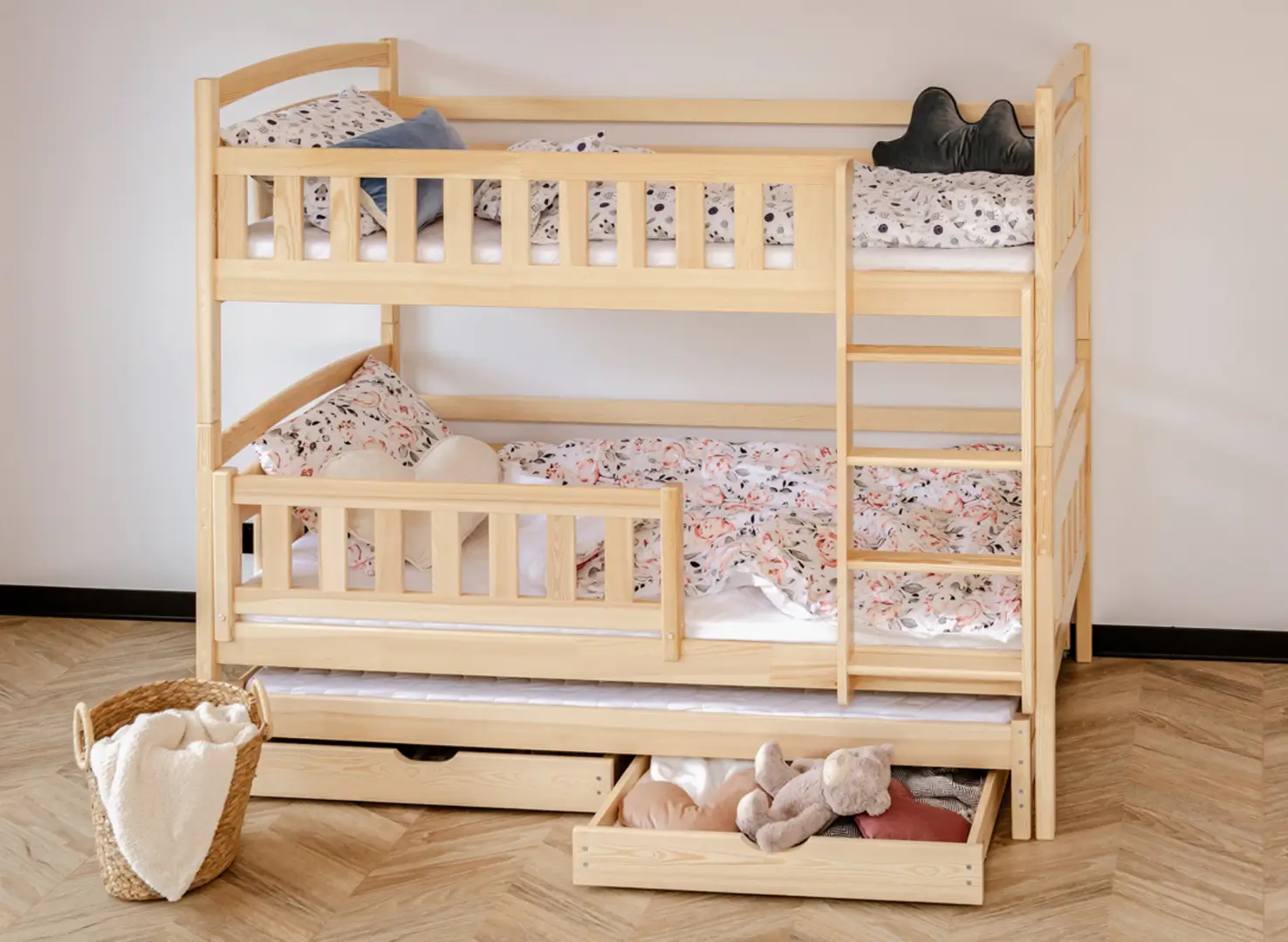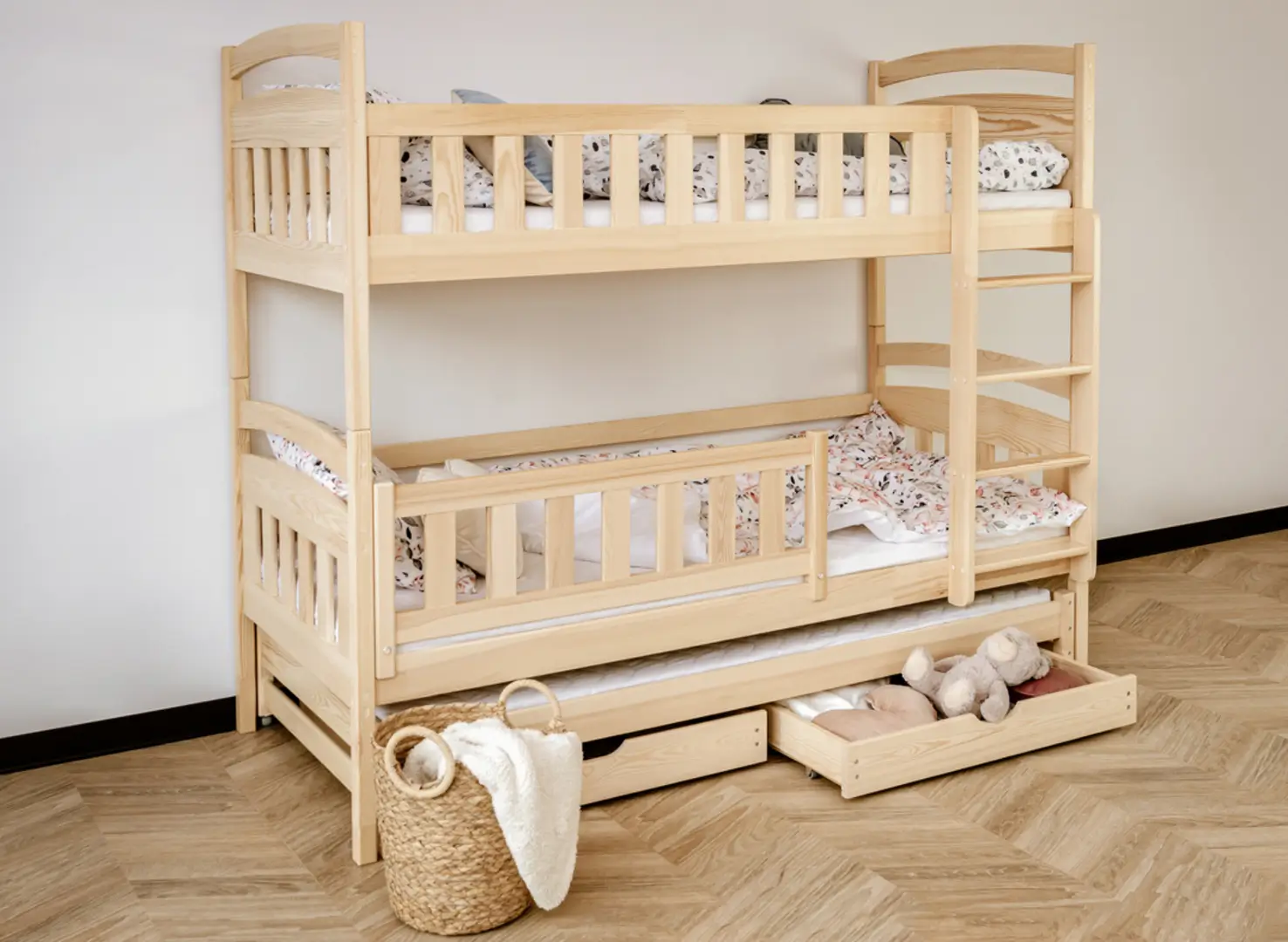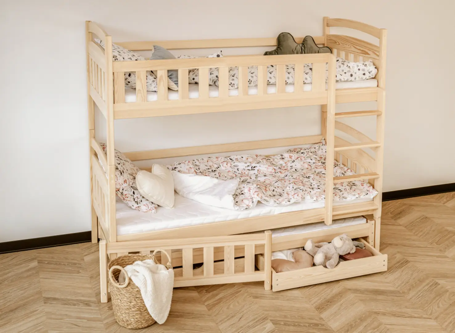 Les tiroirs spacieux du lit superposé en pin BLANKA sont les meilleurs amis de l'ordre dans la chambre des enfants.