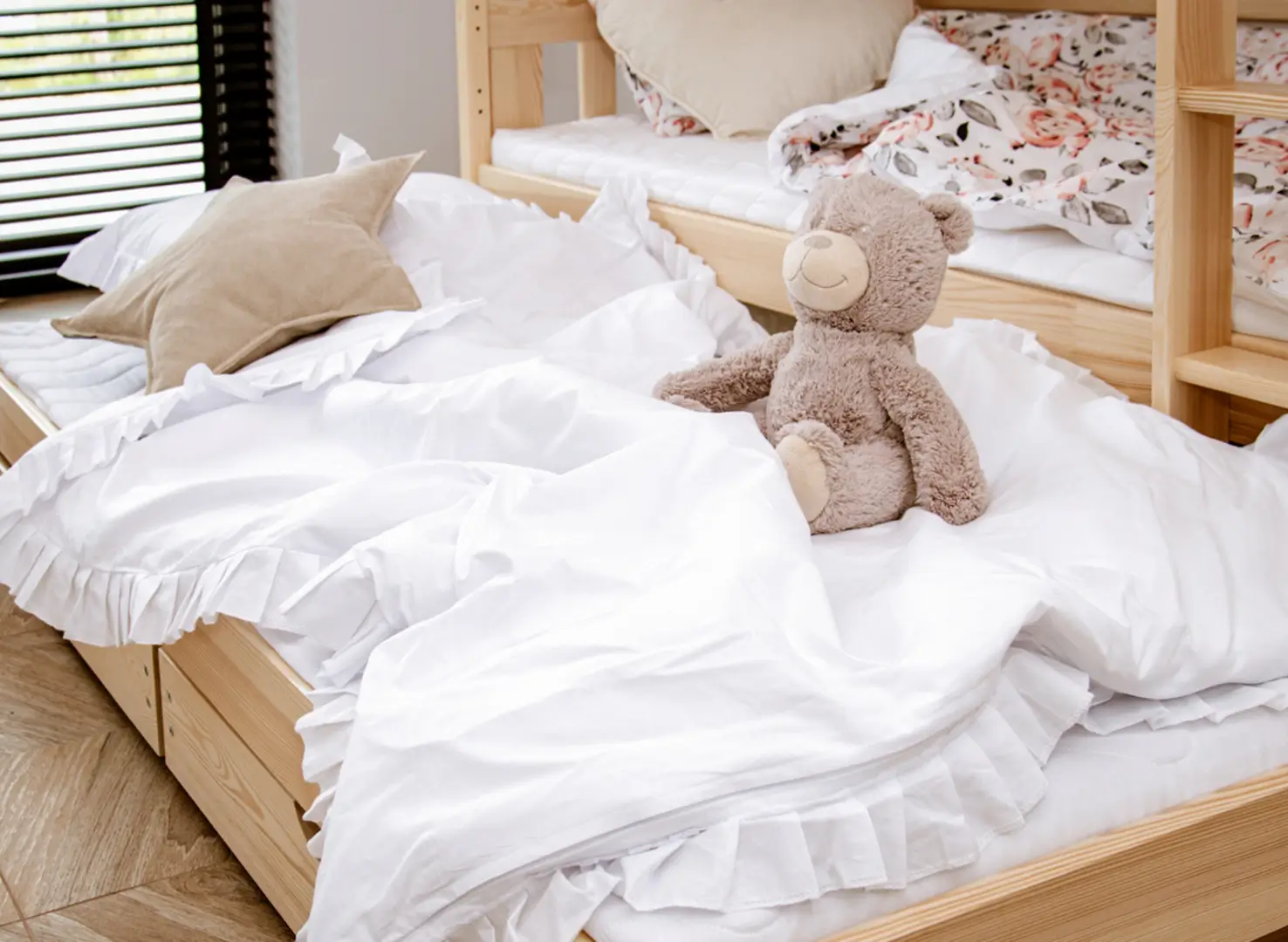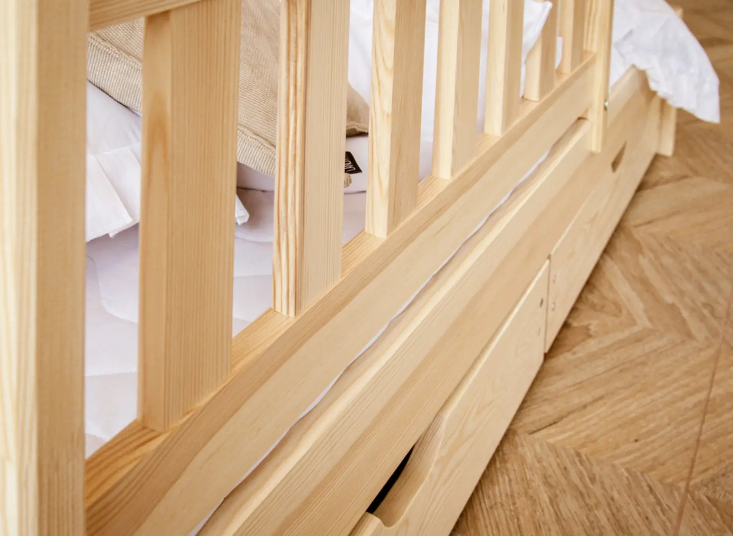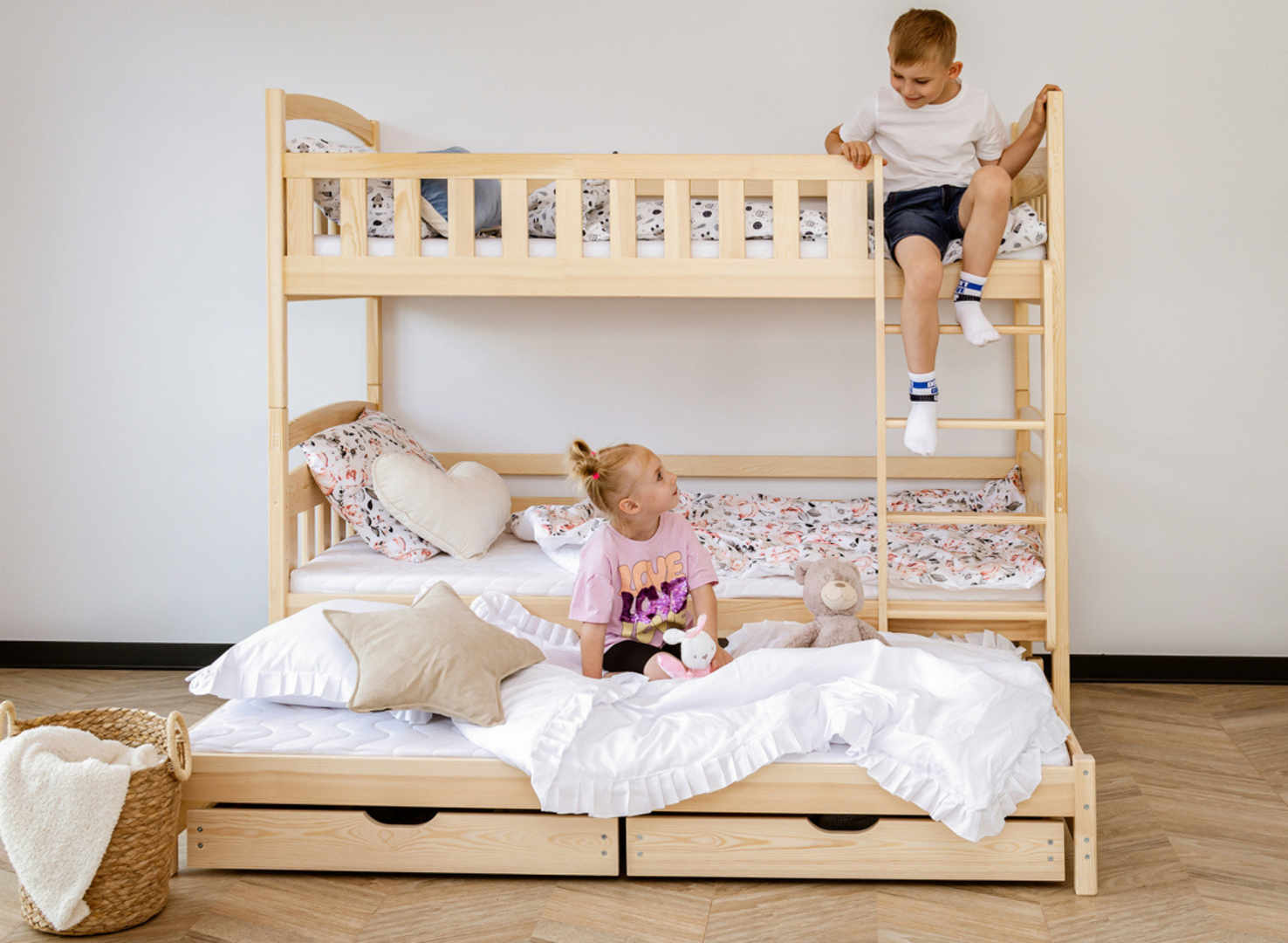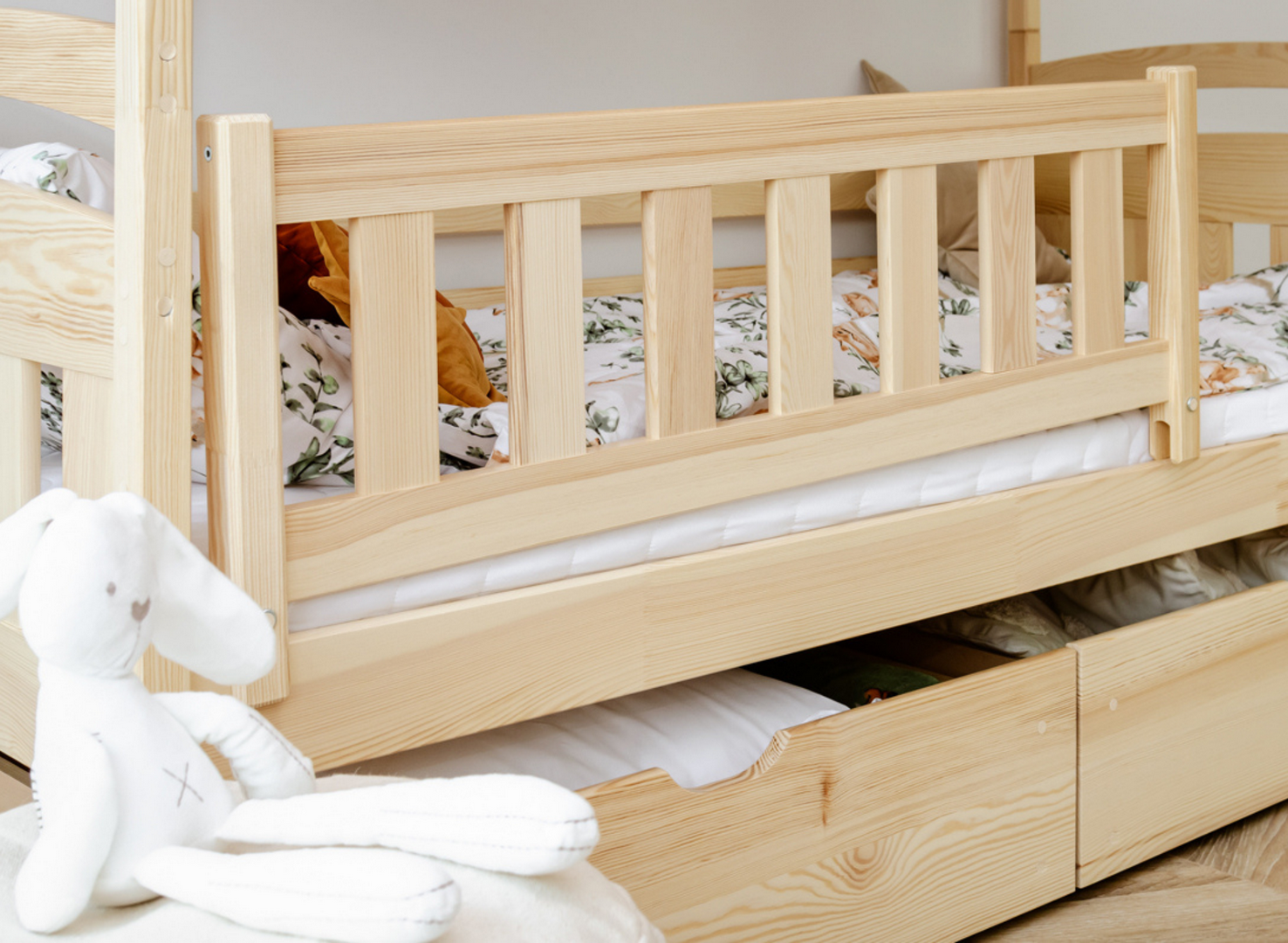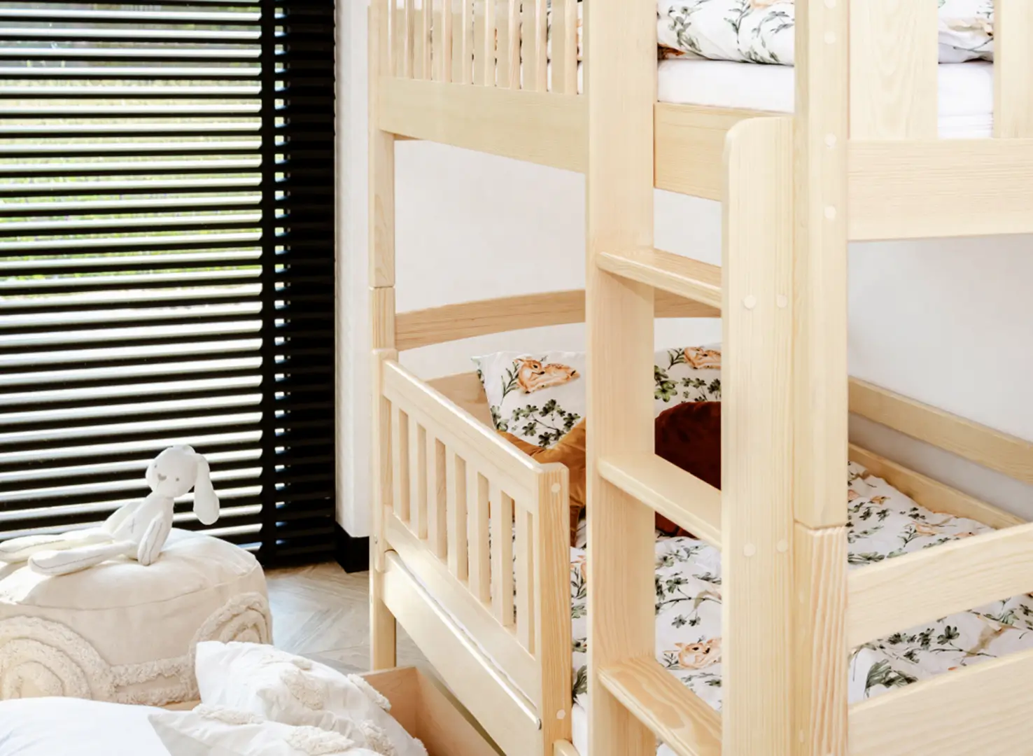 Les tiroirs spacieux du lit superposé en pin BLANKA sont les meilleurs amis de l'ordre dans la chambre des enfants.