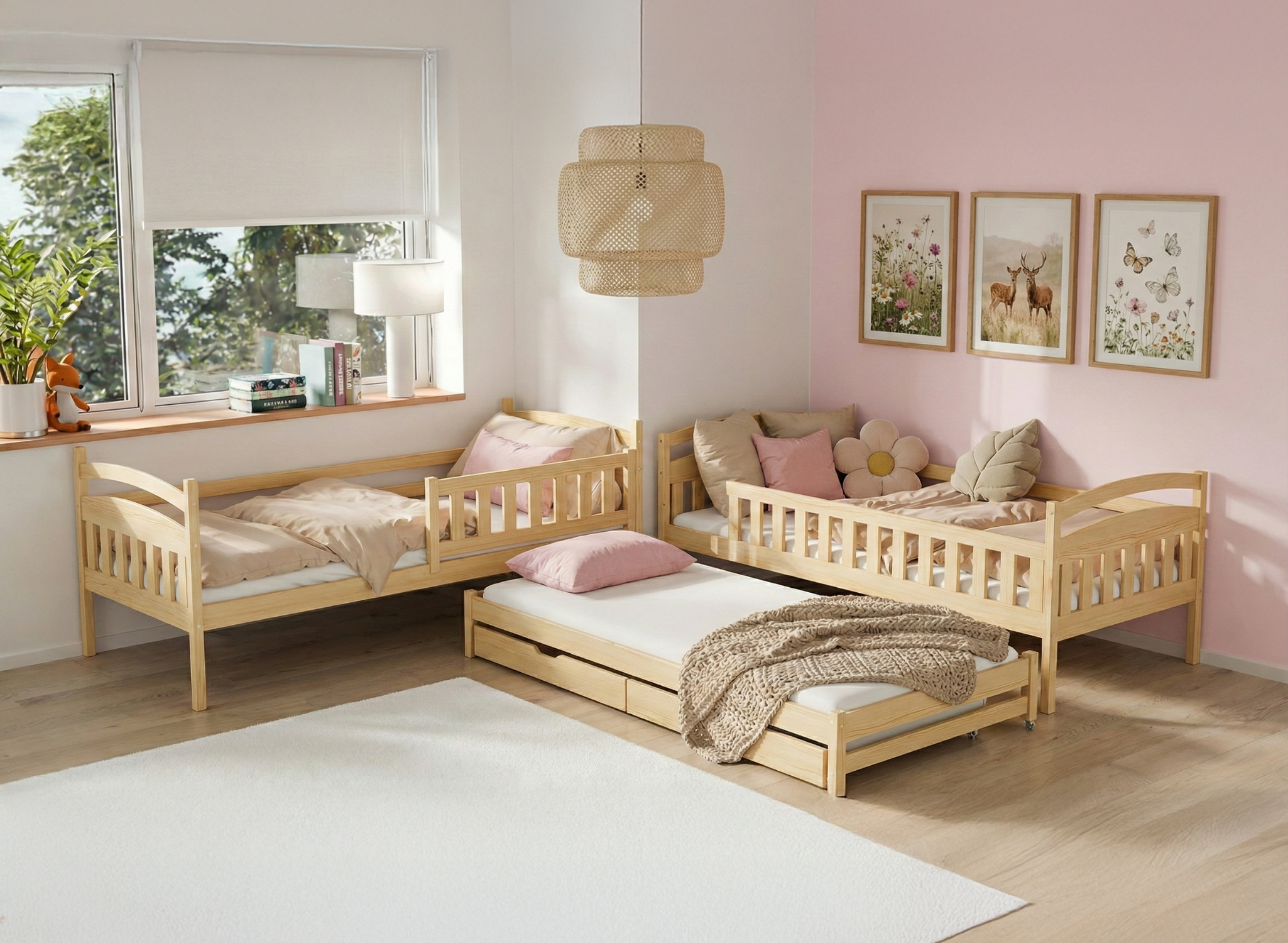 En bas du lit superposé trois places BLANKA, il peut y avoir des tiroirs coulissants si vous optez pour cette option. Leur intérieur spacieux peut contenir de nombreux objets encombrant l'espace dans la chambre de l'enfant, comme des jouets inutilisés depuis longtemps ou des couvertures que vous n'utilisez qu'en hiver. Le matelas coulissant supplémentaire en bas sera d'une aide précieuse lorsque votre enfant invite des amis pour une soirée pyjama, offrant un confort aux invités sans avoir besoin de matelas gonflables supplémentaires.