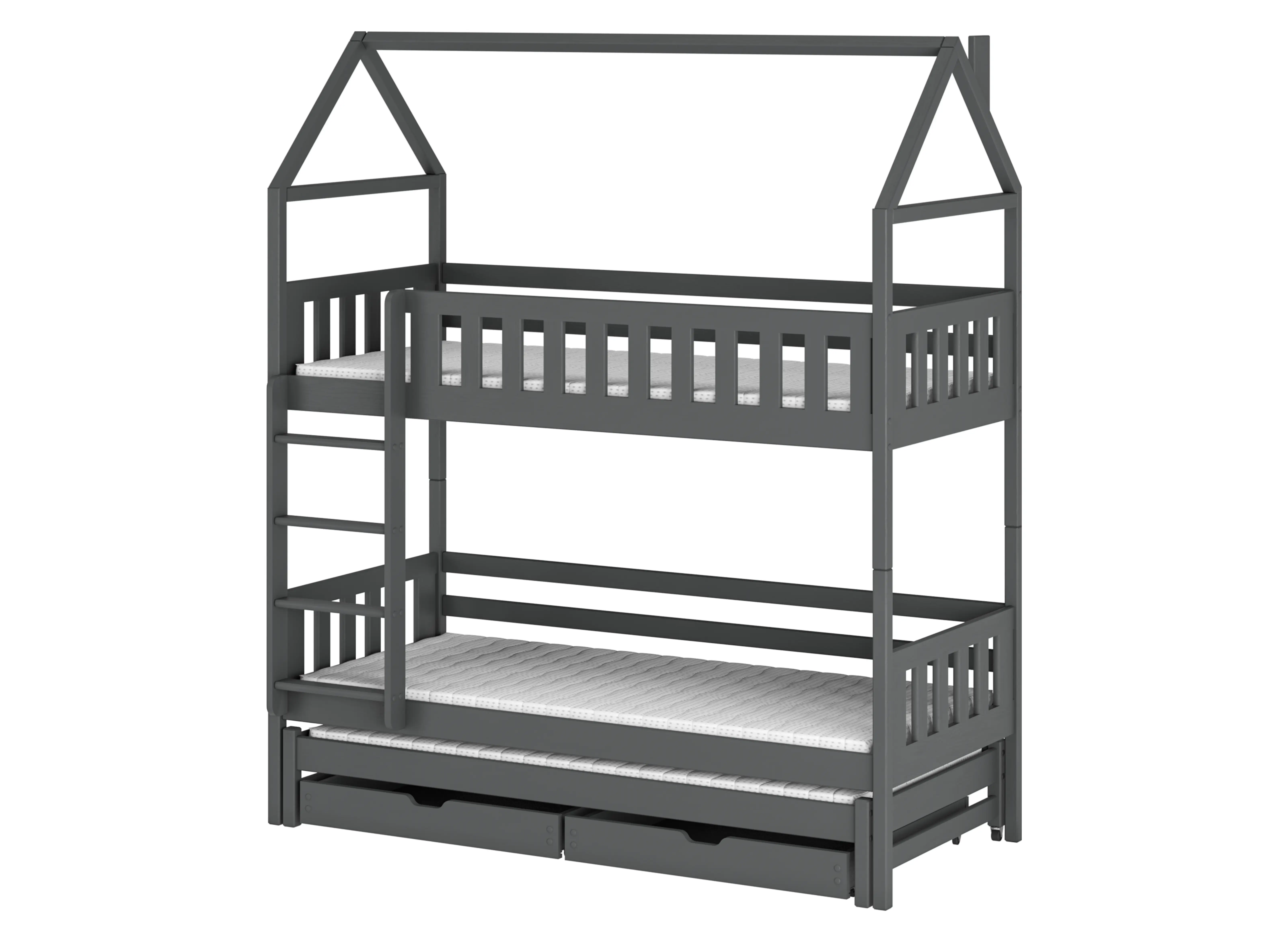 Le lit superposé cabane IGA est équipé de deux tiroirs spacieux pour ranger la literie, les vêtements, les jouets ou autres objets pour enfants. Grâce à cette solution, vous économiserez beaucoup d'espace et maintiendrez la chambre des enfants propre et bien organisée. N'oubliez pas qu'en choisissant le lit superposé cabane IGA, les tiroirs seront fabriqués en combinaison avec du panneau de particules.