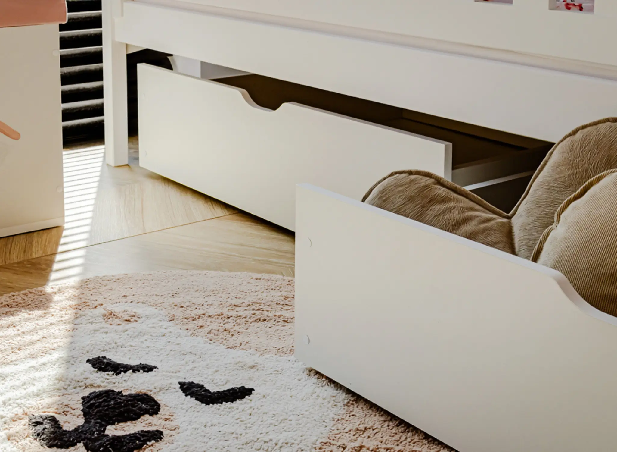 Nous faisons tout notre possible pour que nos meubles non seulement séduisent par leur apparence unique, mais soient également totalement sûrs pour les enfants. C'est pourquoi nous avons conçu une structure spéciale pour le lit GUCIO avec des barrières hautes qui protègent efficacement contre les chutes. Le matériau de fabrication du cadre ne présente également aucun danger pour l'enfant – il s'agit de bois de pin recouvert de peintures et de vernis non toxiques. Bien que le lit attire le plus l'attention, c'est le matelas qui garantit une bonne nuit de sommeil. Un matelas bien adapté offrira un soutien adéquat pour la colonne vertébrale de l'enfant et assurera ainsi un repos efficace. Vous pouvez acheter le lit d'enfant GUCIO avec un matelas inclus ou le choisir séparément – en fonction de ce qui vous convient le mieux.