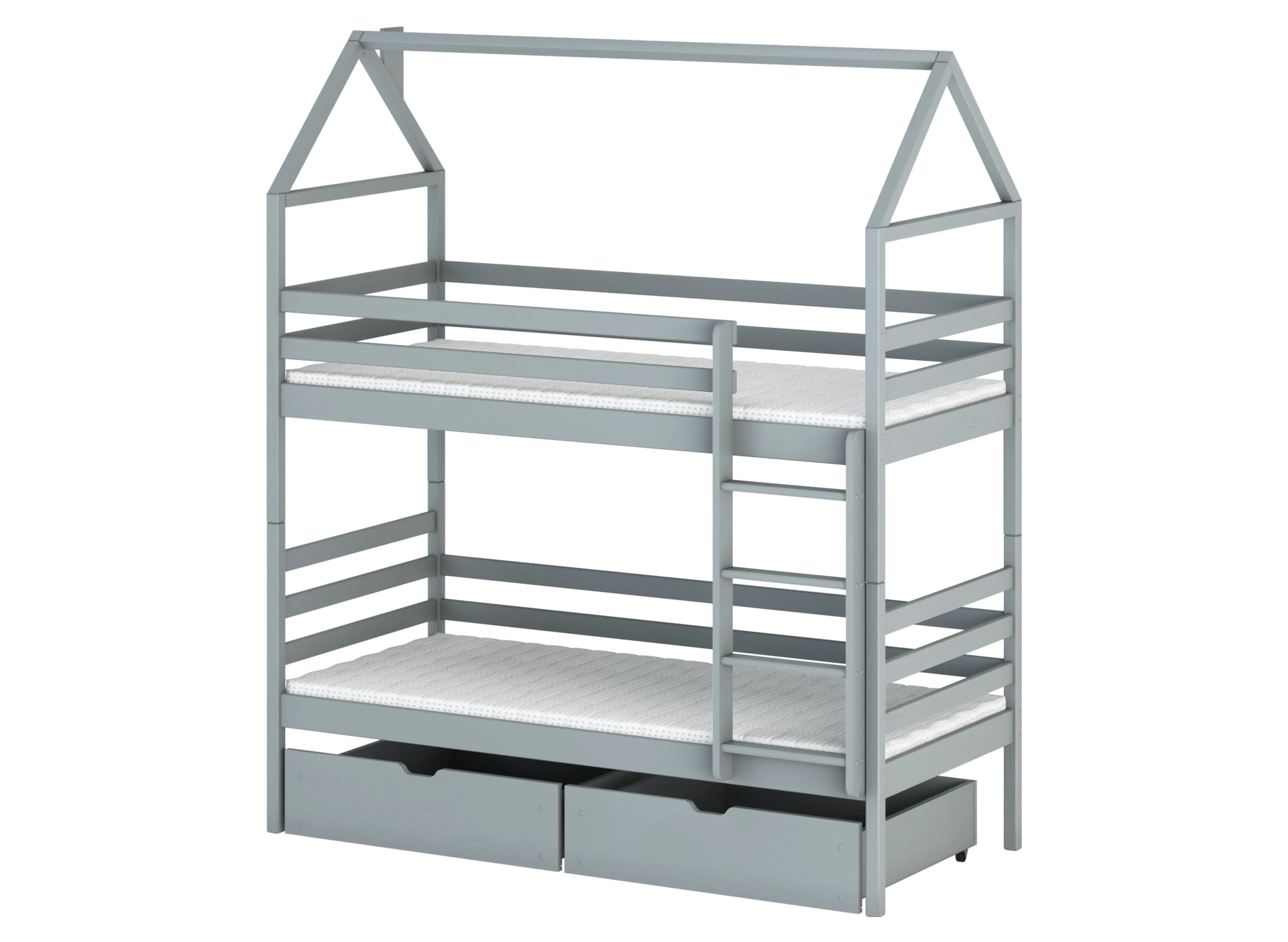 Le lit superposé cabane ALEX est une excellente base pour les enfants et un refuge après une journée épuisante à l'école. Nous devons mentionner la protection complète qu'offre cette construction. L'échelle du lit enfant ALEX dispose de barreaux profilés de manière appropriée, assurant une montée et une descente sécurisées du lit. Toutes les planches montées dans le cadre empêchent les chutes et garantissent une tranquillité d'esprit totale, même pour les petits très actifs. Le lit enfant cabane ALEX est un style qui ne passera pas inaperçu. Tout comme pour les petits. Grâce à lui, vous créerez un espace féerique qui favorisera le développement, le bien-être et la créativité de chaque enfant. Chaque moment passé sur le lit enfant ALEX avec toit sera inoubliable. Ne vous laissez pas tromper par le caractère charmant du lit superposé ALEX. C'est un lit entièrement fonctionnel et sûr pour deux frères et sœurs. De plus, la structure en forme de toit au-dessus du lit peut être utilisée comme partie de la protection.