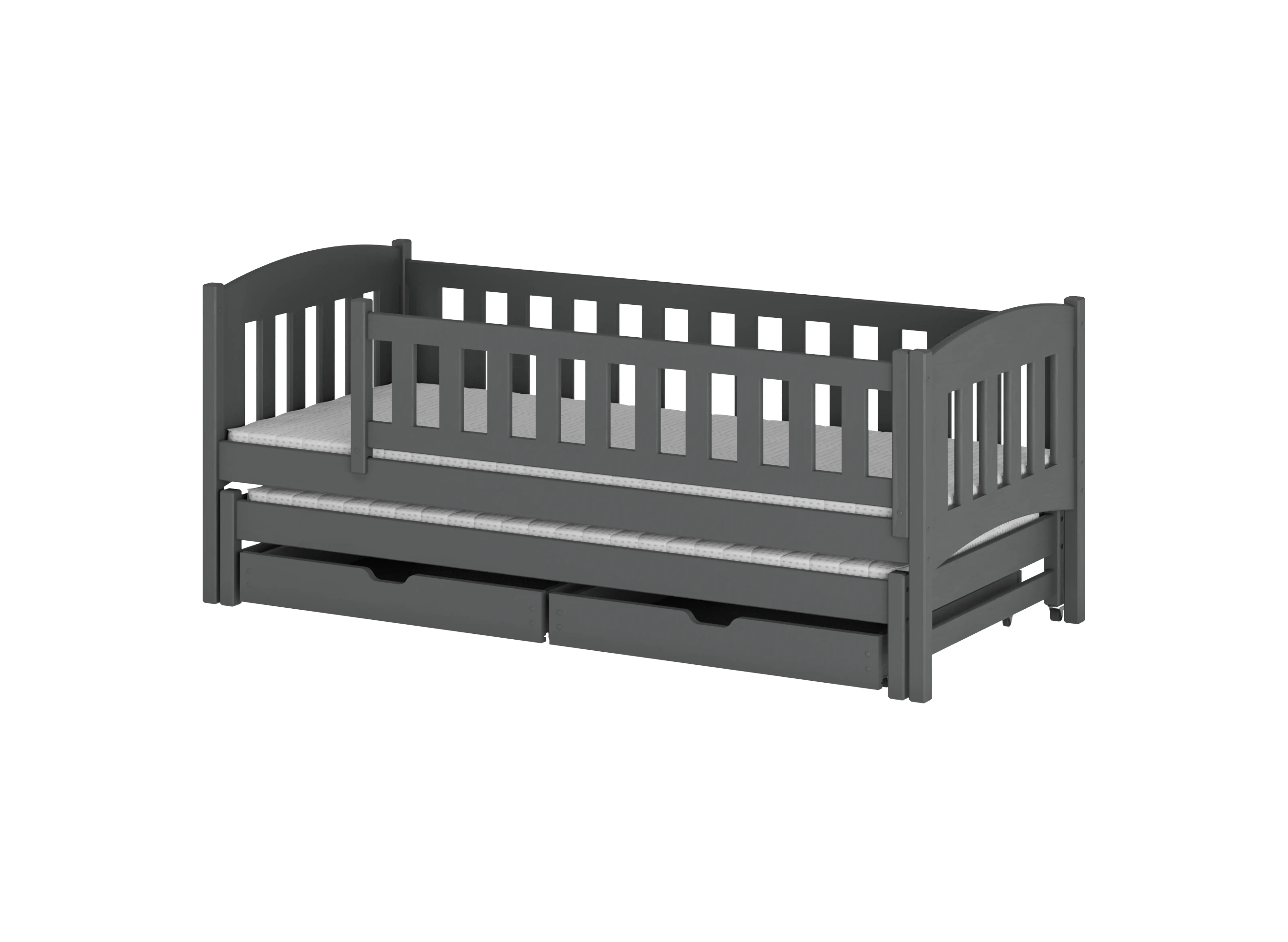 Lit bas graphite avec tiroir AMELKA 90x200 - idéal pour deux enfants