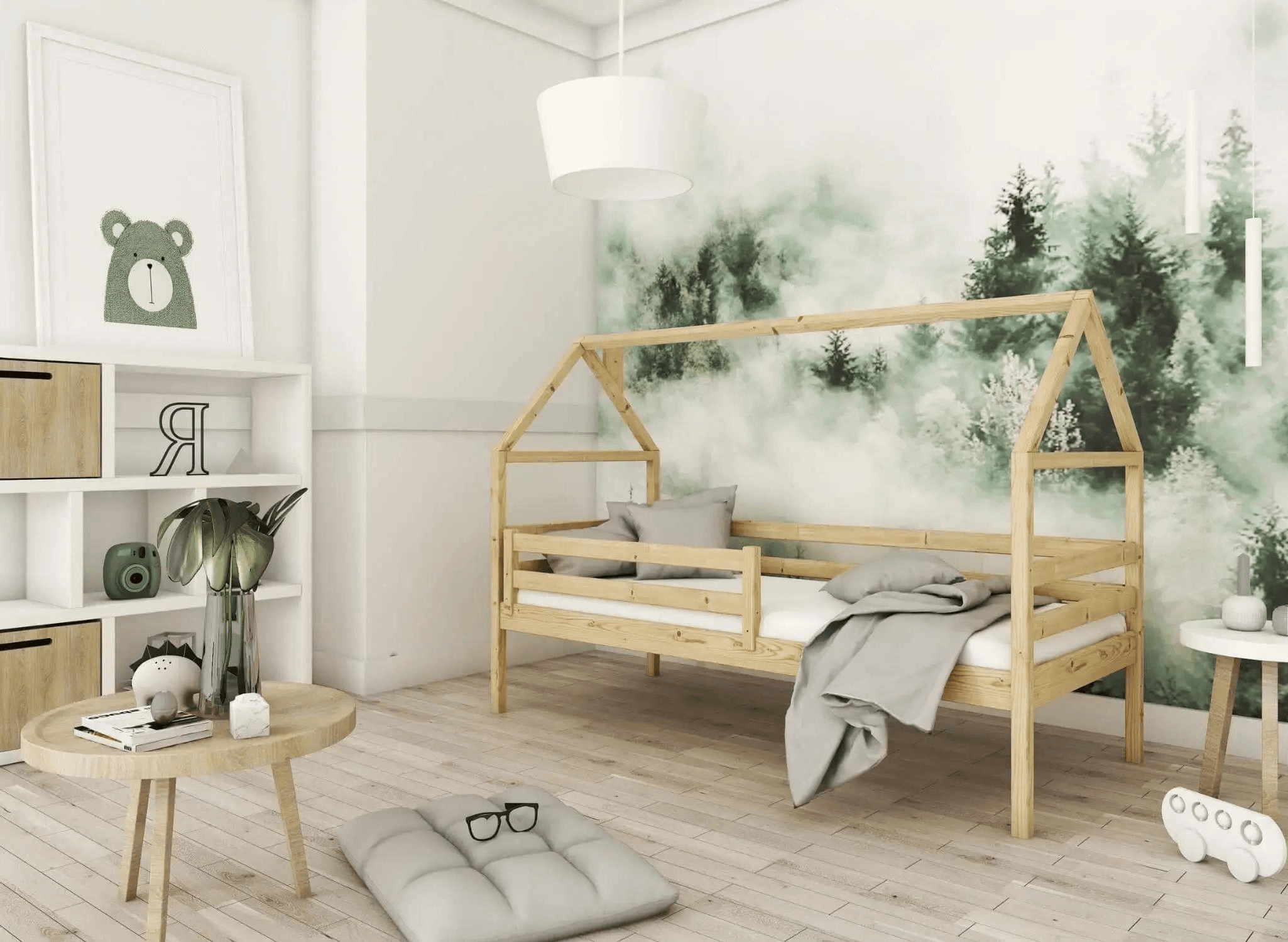 Lit d'enfant en pin en bois ARON - solide et durable.