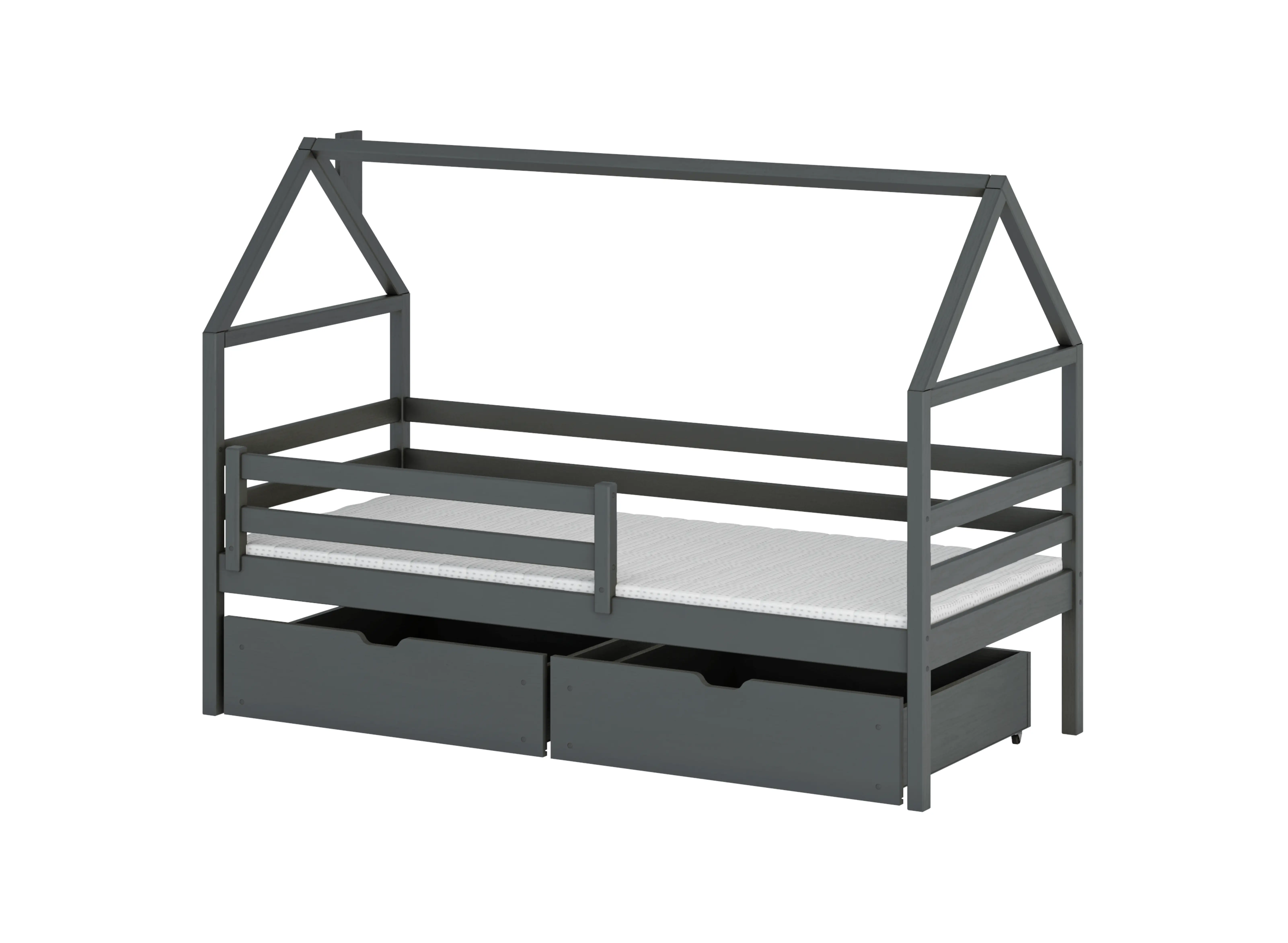 Le lit enfant type cabane ARON de Lano Meubles est le rêve de chaque enfant devenu réalité. C'est un meuble conçu dans une forme qui stimule la créativité de chaque petit. Sa construction réfléchie, sa grande robustesse et sa stabilité garantissent des années d'utilisation sans problème et le sourire de votre enfant chaque jour. Chez Lano Meubles, nous accordons beaucoup d'attention non seulement à l'aspect visuel, mais aussi à la fonctionnalité. Le lit enfant ARON n'est pas seulement un meuble confortable pour dormir, mais aussi une solution de rangement pour divers accessoires pour enfants. Sous le lit, il y a suffisamment de place pour ajouter 2 tiroirs spacieux. Vous pouvez les acheter en option lors de la configuration du produit. Bonne humeur et repos confortable garantis.