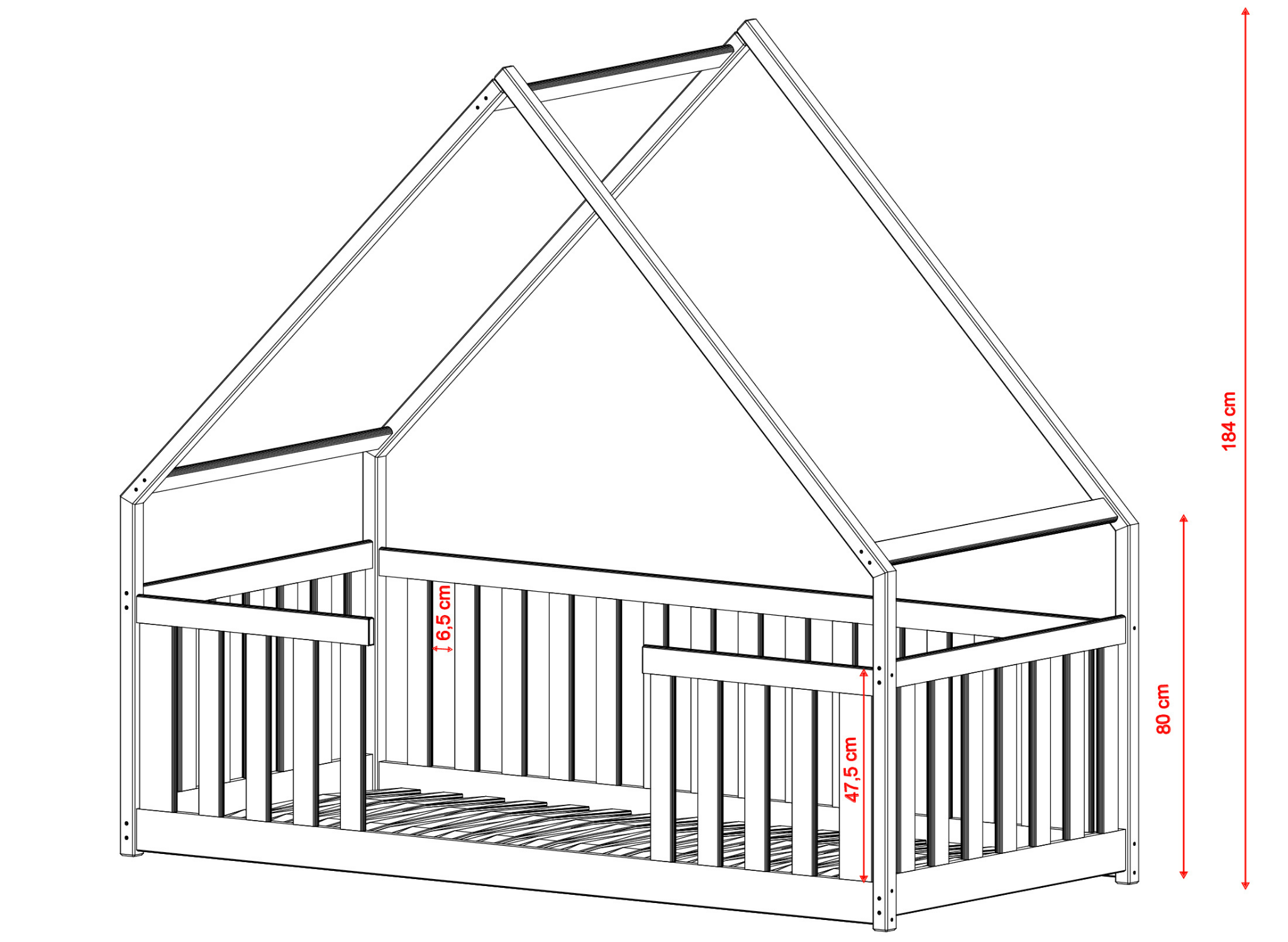 Avec Lano, vous pouvez créer la chambre d'enfant de vos rêves. Ce modèle est un excellent choix aussi bien comme lit pour fille que pour garçon. Vous pouvez le personnaliser en choisissant votre couleur préférée dans notre palette pour qu'il s'accorde parfaitement avec le reste de la décoration. Ainsi, votre enfant se sentira spécial et sa chambre deviendra un endroit confortable pour dormir et se détendre. Le toit douillet du lit BEE procure un sentiment d'intimité et de sécurité, comme si l'enfant avait sa propre petite cabane pour se cacher du monde. Imaginez votre enfant passant des heures à raconter des histoires, lire des livres ou créer son petit coin pour des aventures créatives dans ce magnifique parc en forme de maison. Nous prenons soin de votre enfant comme vous. C'est pourquoi nous n'utilisons que des matériaux de la plus haute qualité pour la fabrication de nos lits. Nous utilisons du bois de pin et des laques certifiées, qui non seulement améliorent l'apparence des lits, mais garantissent avant tout la sécurité de votre enfant. De plus, les barrières en bois assurent un sommeil sécurisé à votre enfant et tranquillisent les parents. Nous veillons à ce que chaque détail soit soigneusement conçu pour offrir aux enfants les plus beaux rêves.